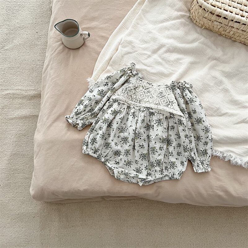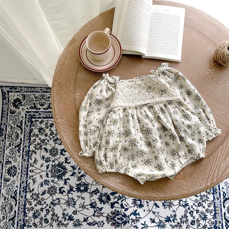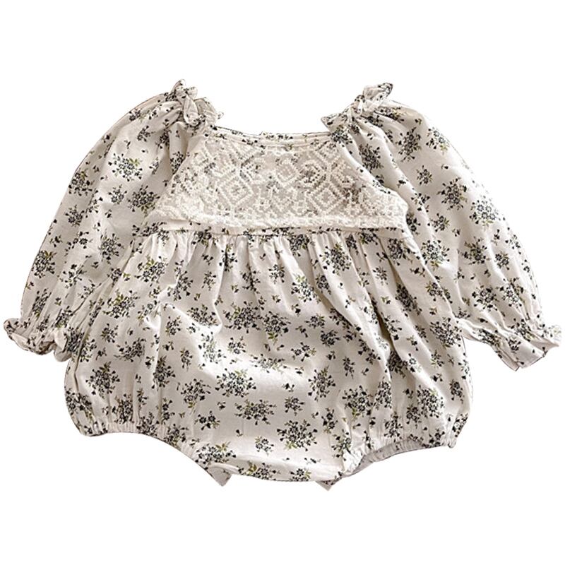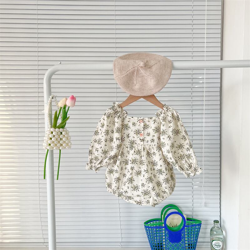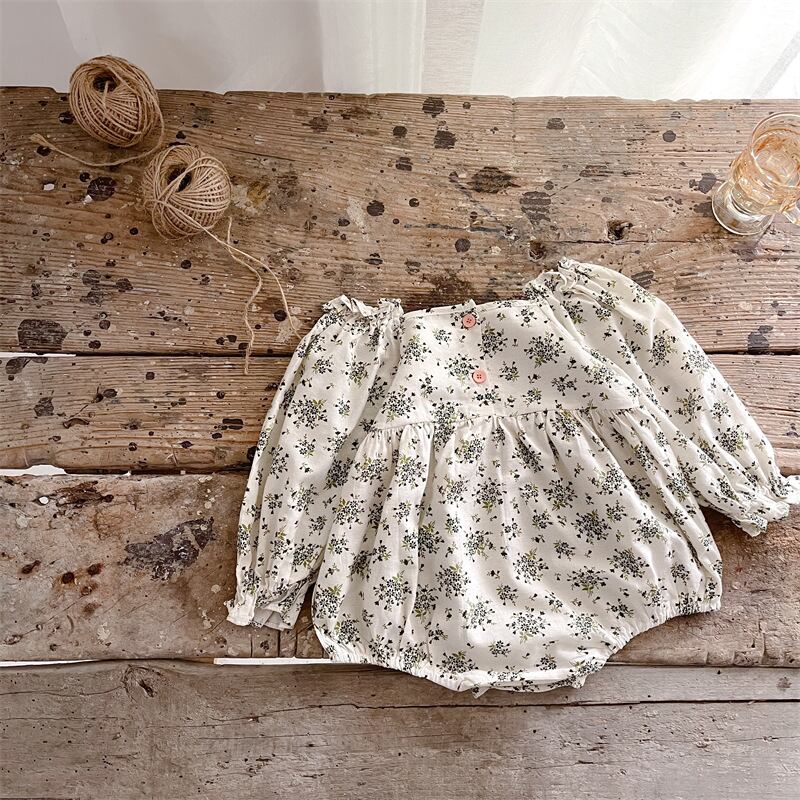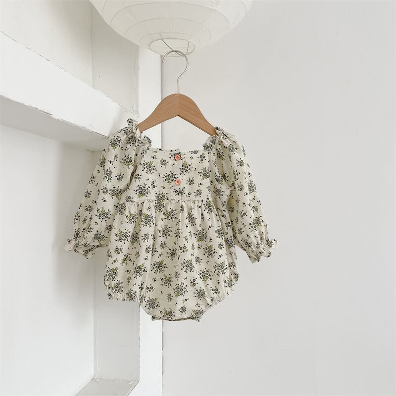 スプリングスタンダードフローラルトライアングルロンパース オールインワン レトロ 大人ガーリー スウィート キュート カジュアル 春物 花柄 スクウェア 9/24 秋冬 mi0936982612607