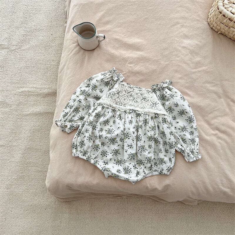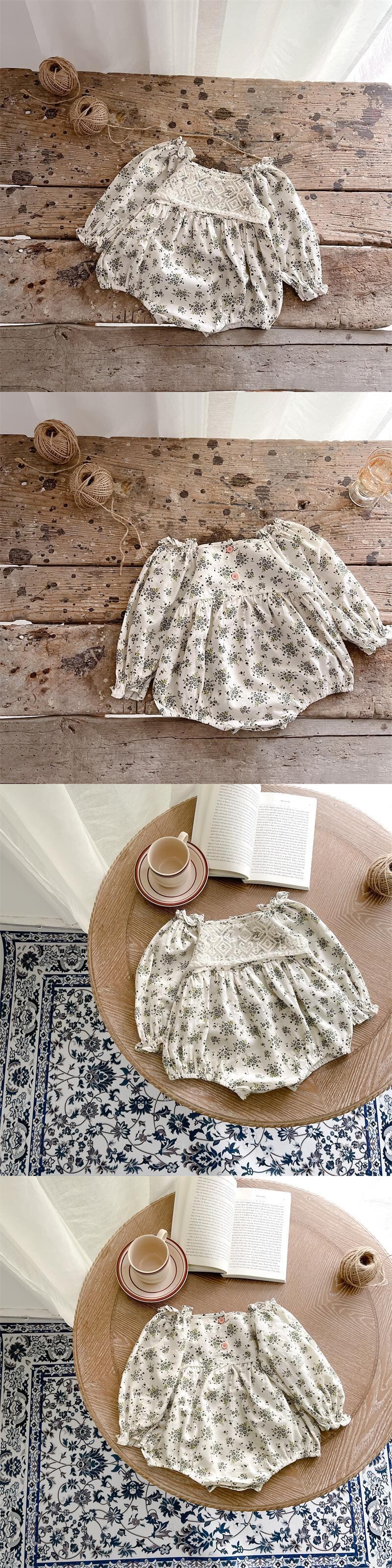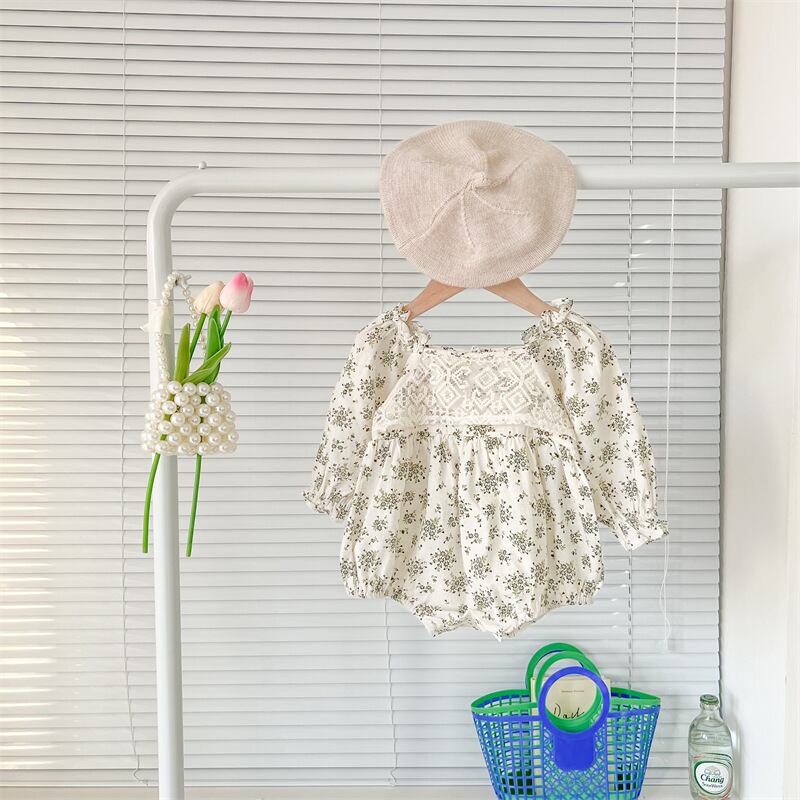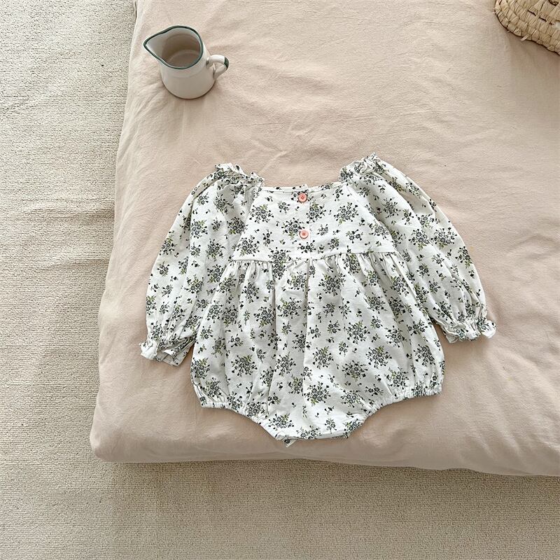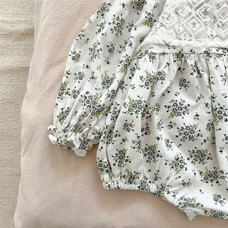 色:小さな花柄ワンピースロンパース
