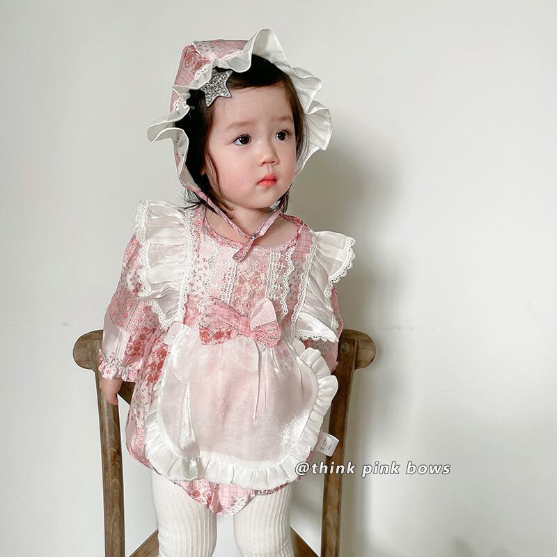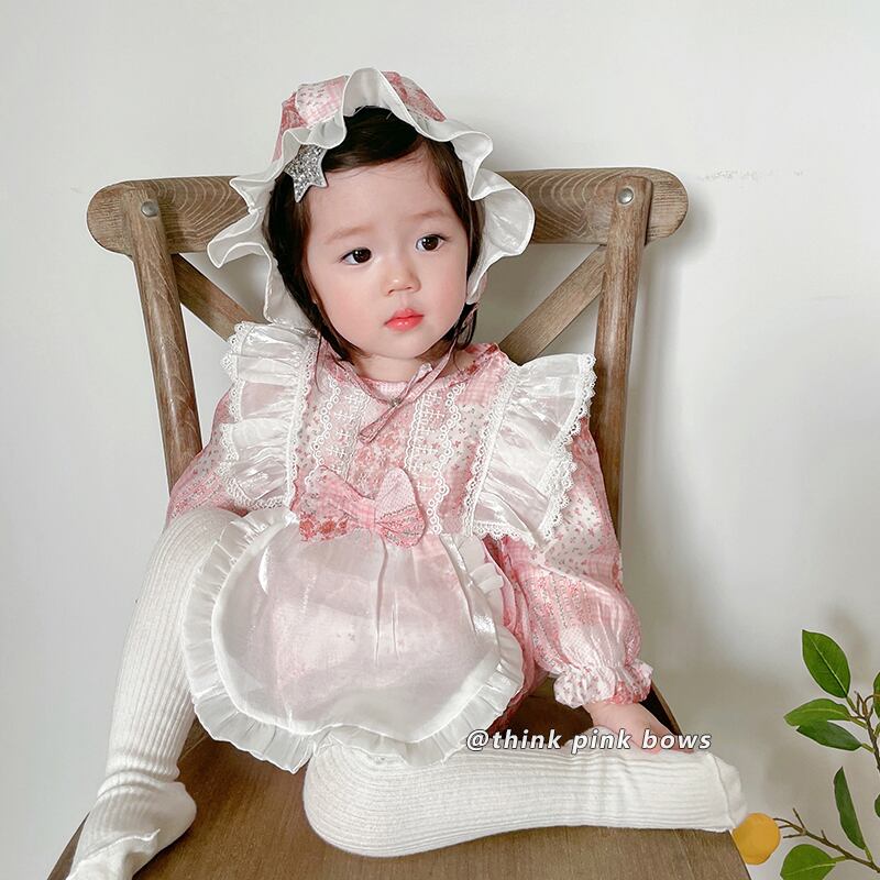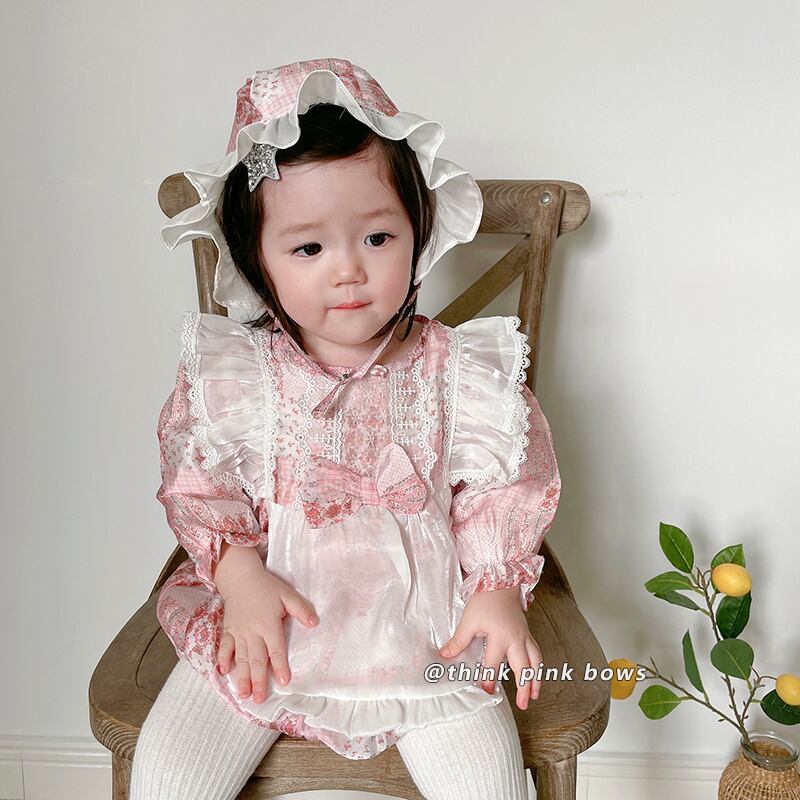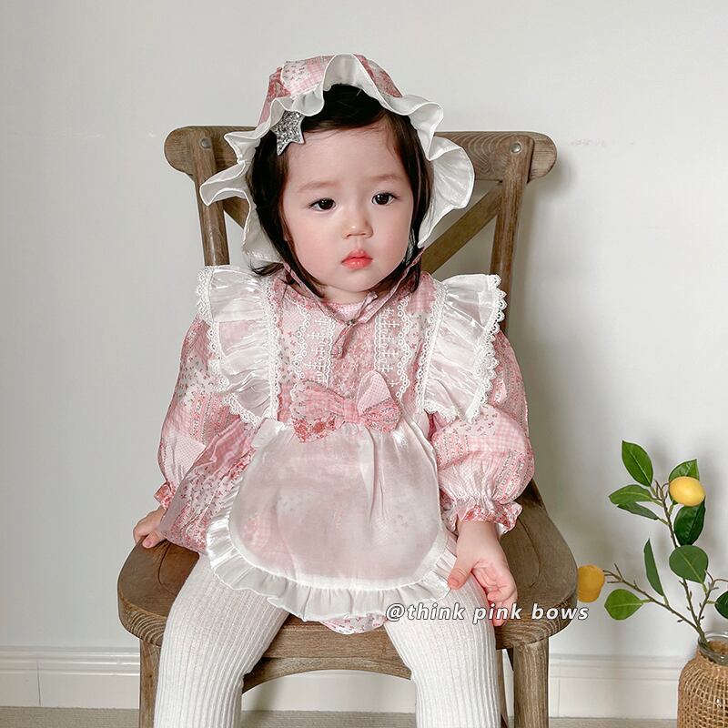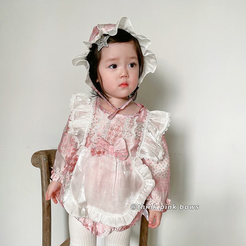 スプリングフローラルトライアングルロンパース オールインワン 帽子 大人ガーリー スウィート キュート カジュアル 春物 花柄 9/24 秋冬 mi0995691613027