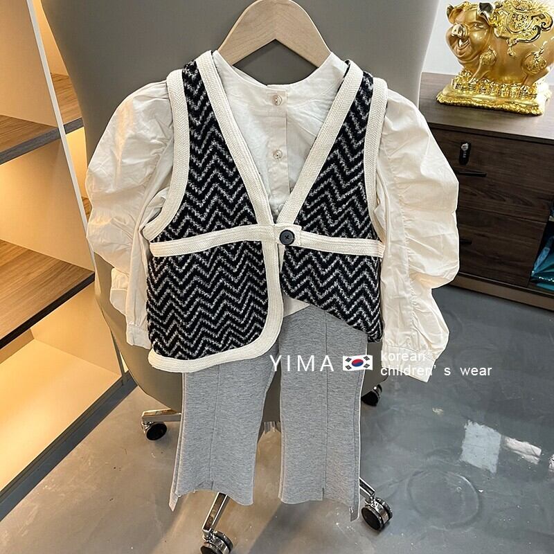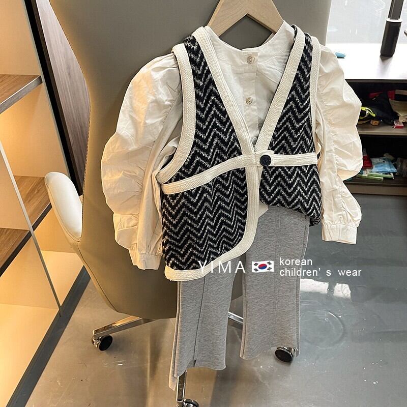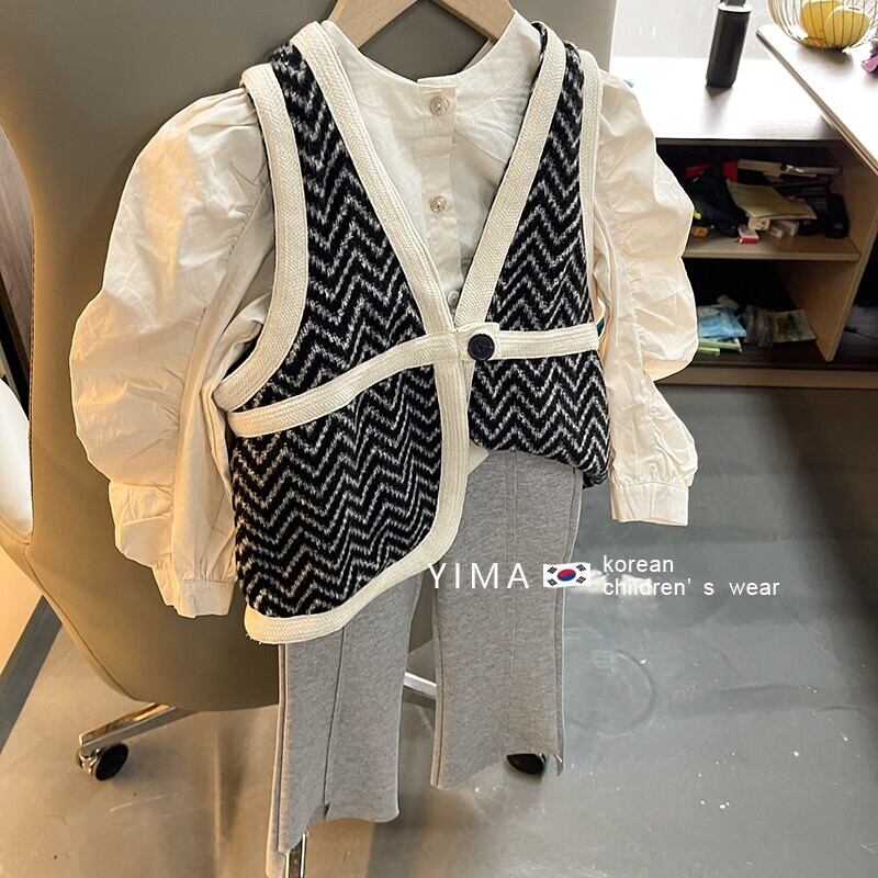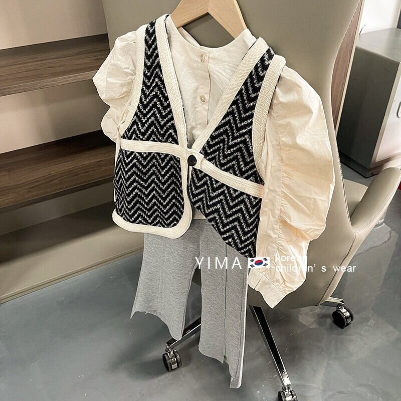 色:黒のベスト,ファッションクロス,グレーパンツ