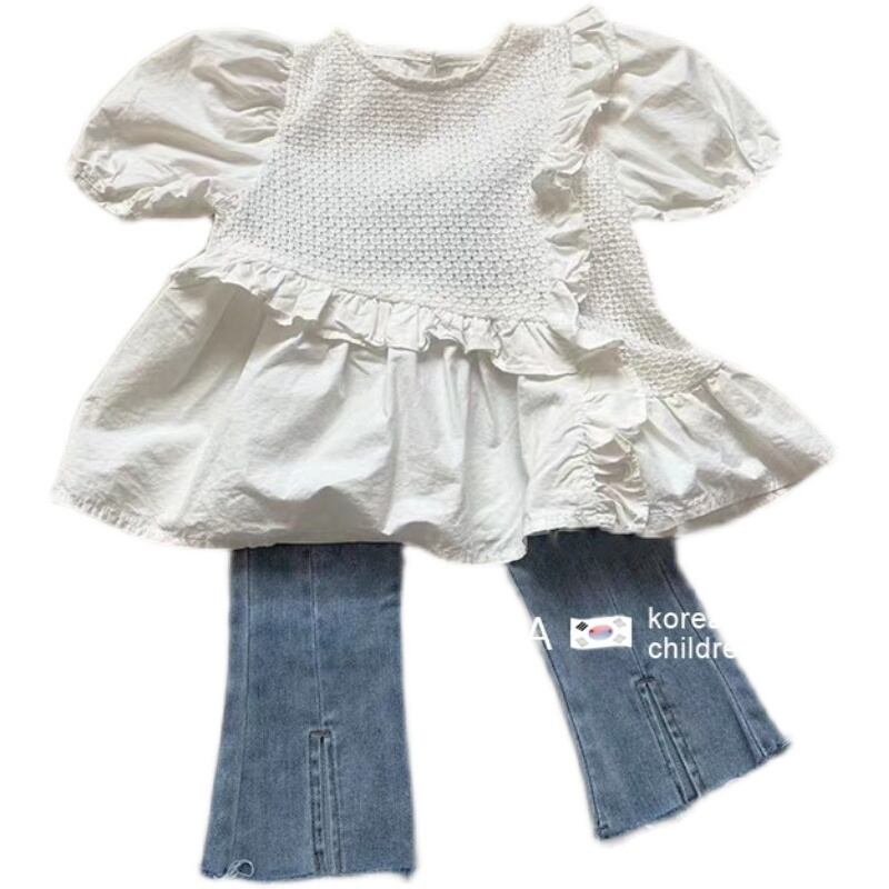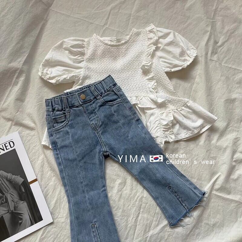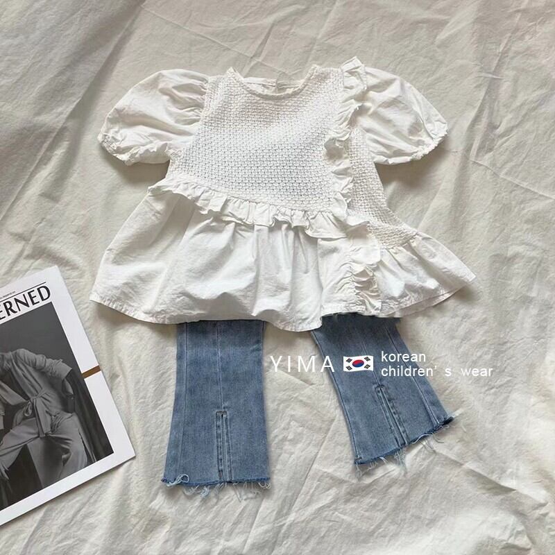 色:白のシャツ,ブルージーンズ