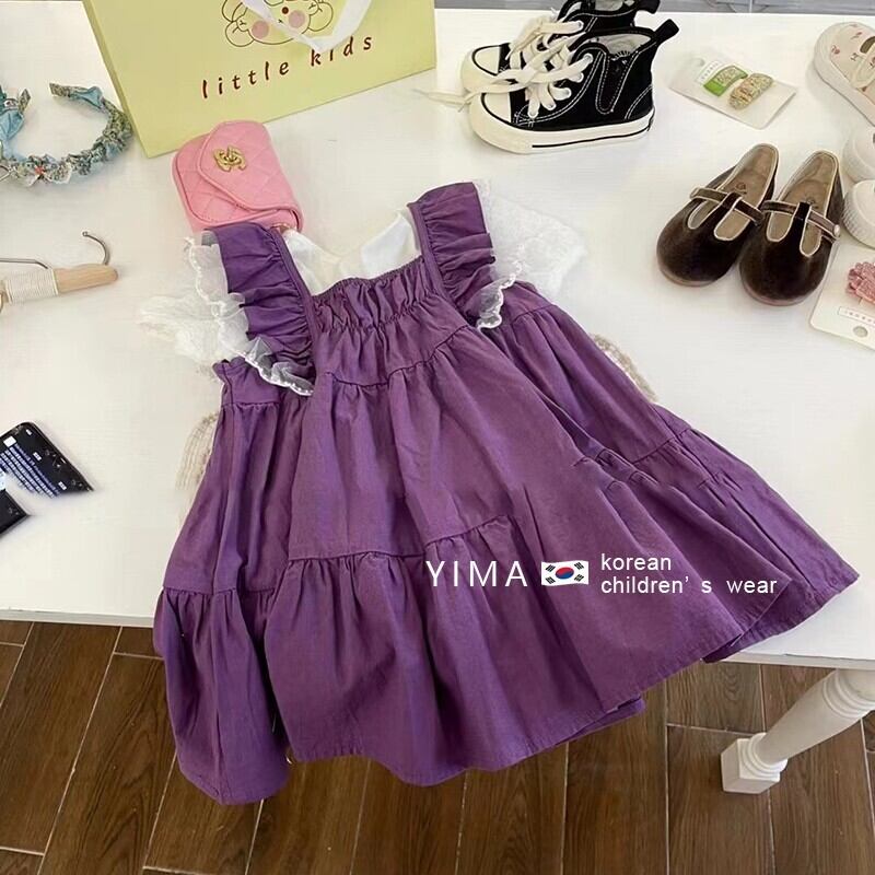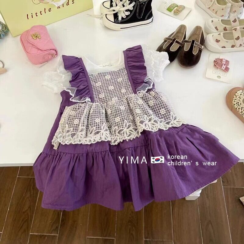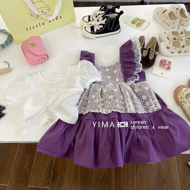 色:ハイビスカスパープルフリルスカート,真っ白な半袖