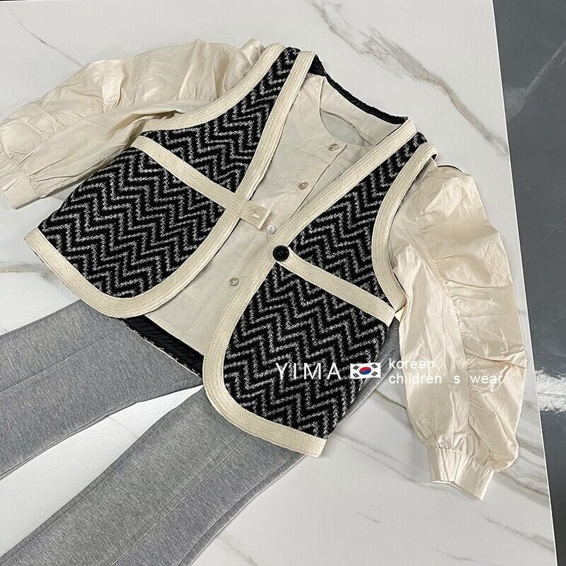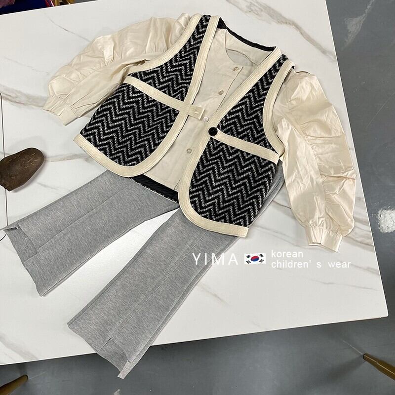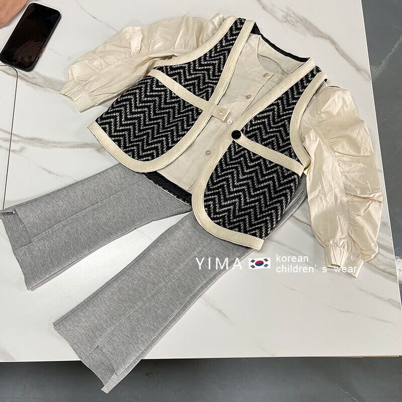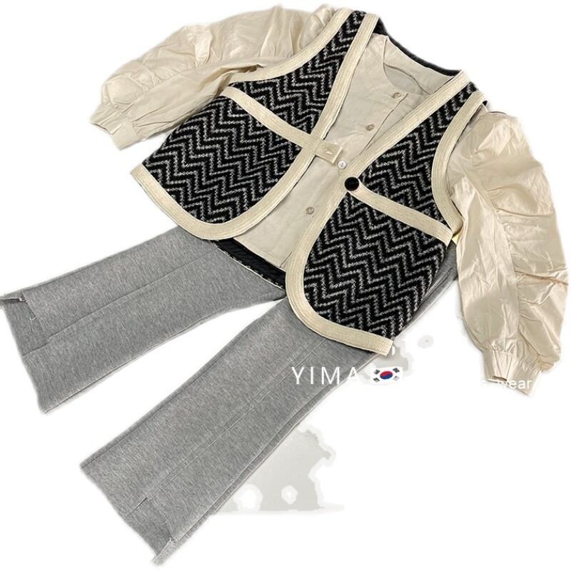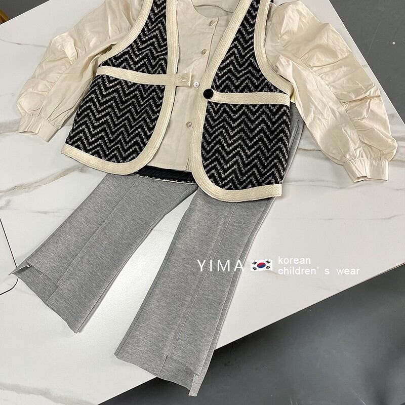 色:黒のベスト,ベージュのシャツ,グレーパンツ