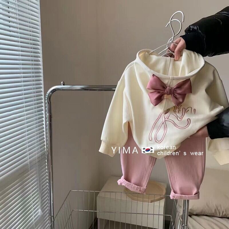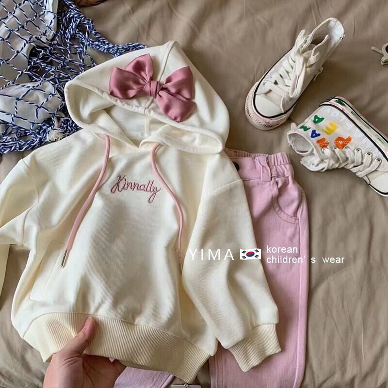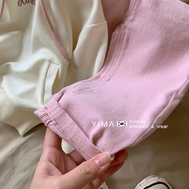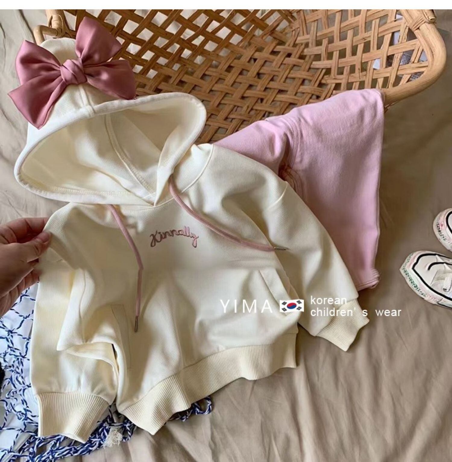 色:アプリコットフード付きスウェットシャツ,ピンクのパンツ