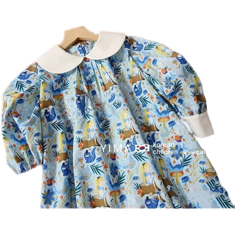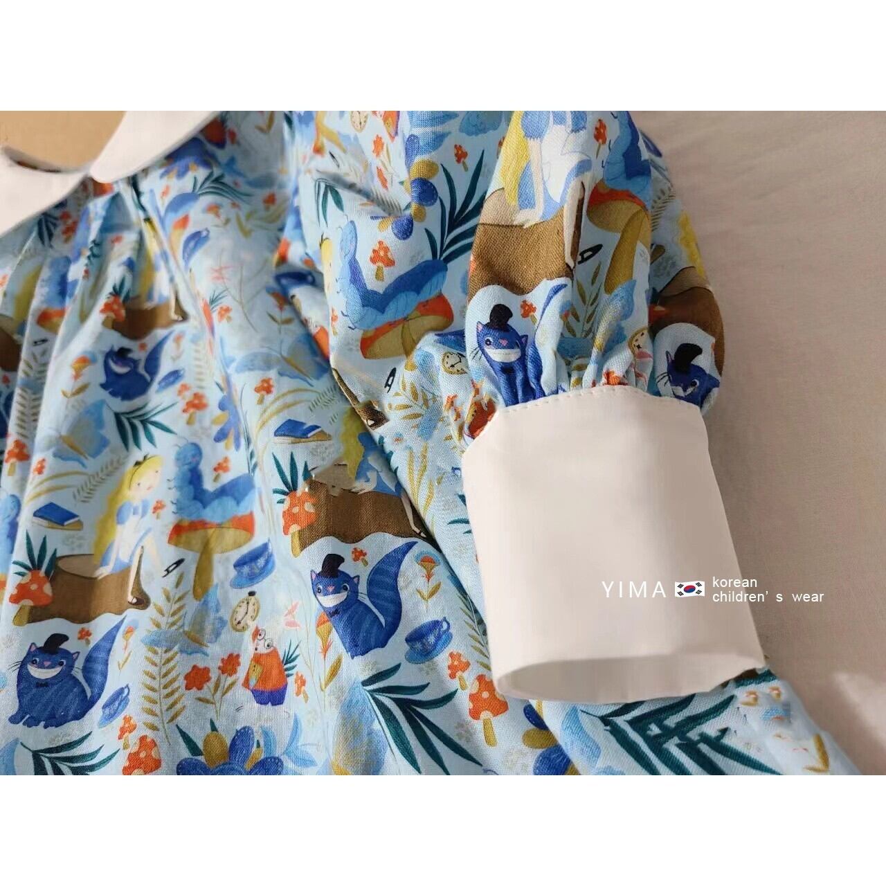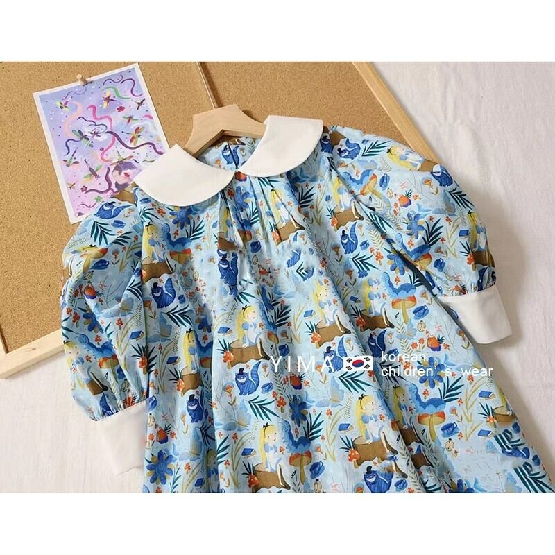色:青い花の人形のドレス