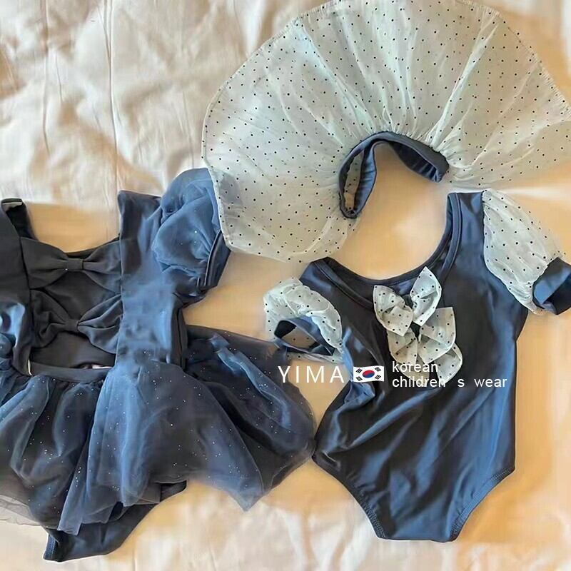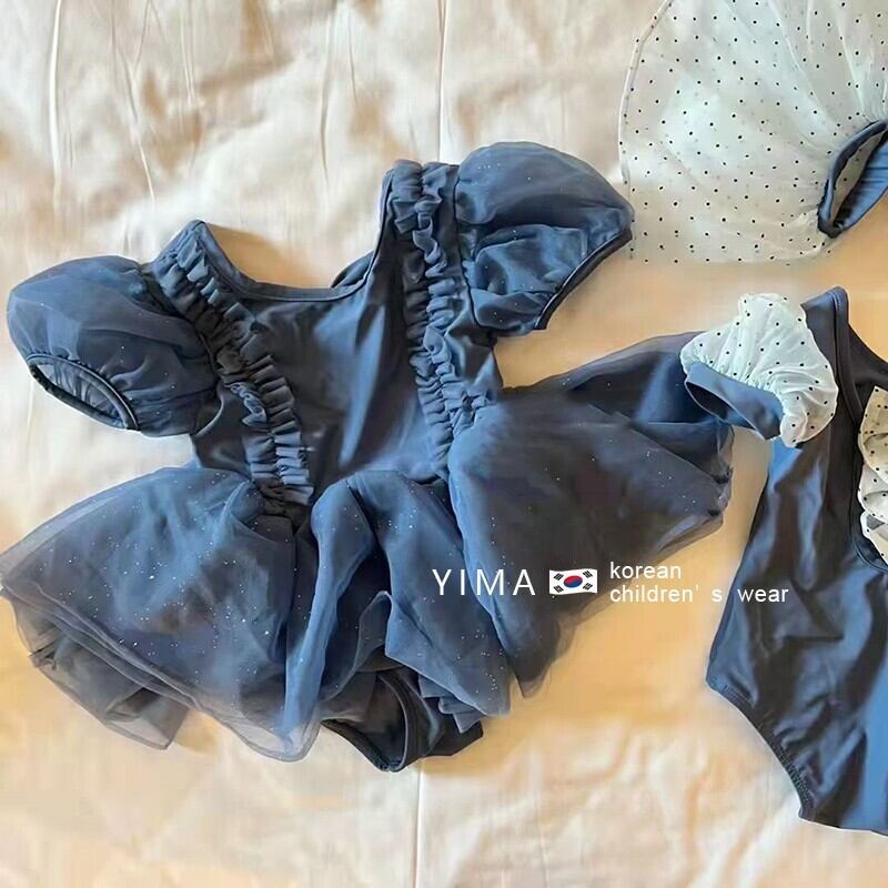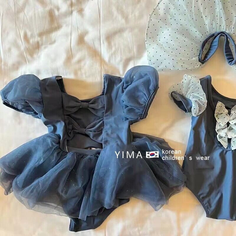 色:青い服,ホワイト水玉スカートスーツ