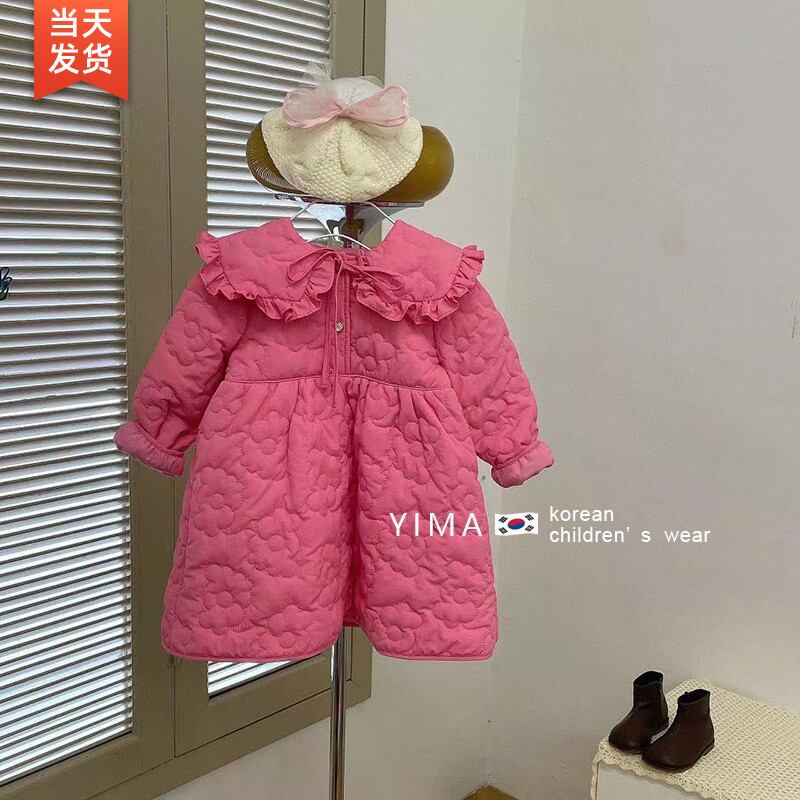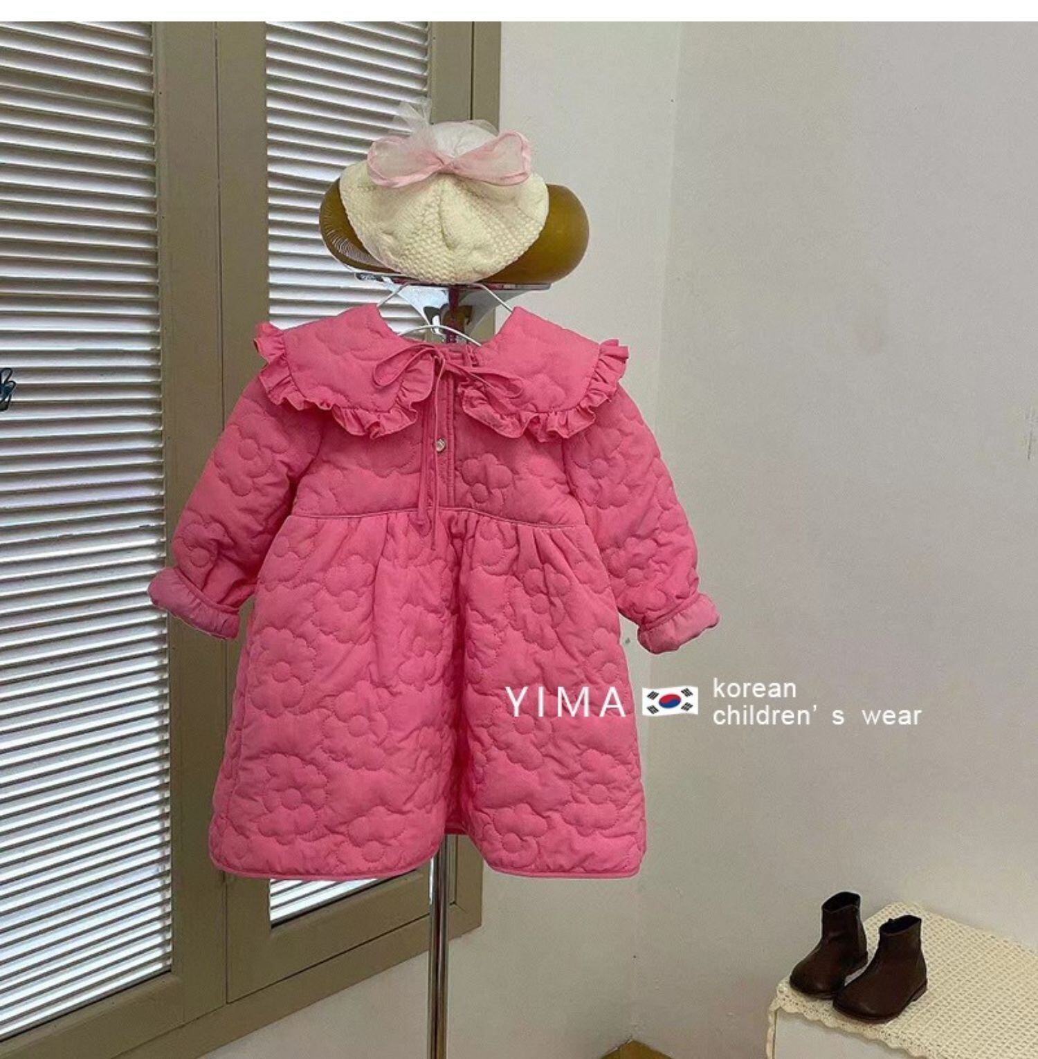色:ピンクのドレス,黒のパフスリーブボトミングシャツ,黒い靴下,同じ日にスポット