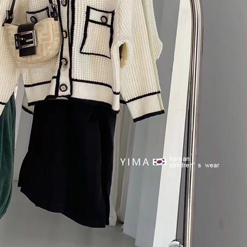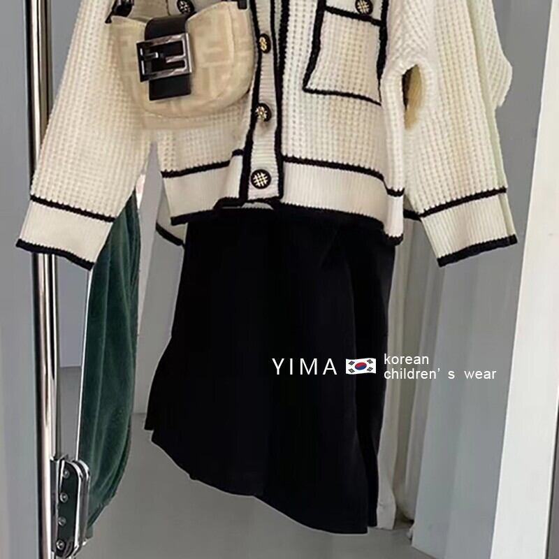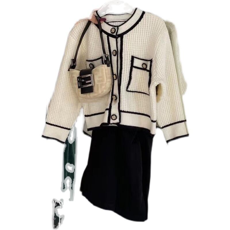 色:-白いニットセーター,黒スカート