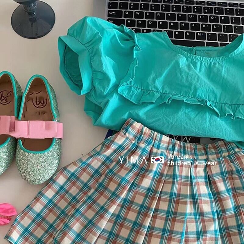 色:グリーントップ,チェック柄スカート