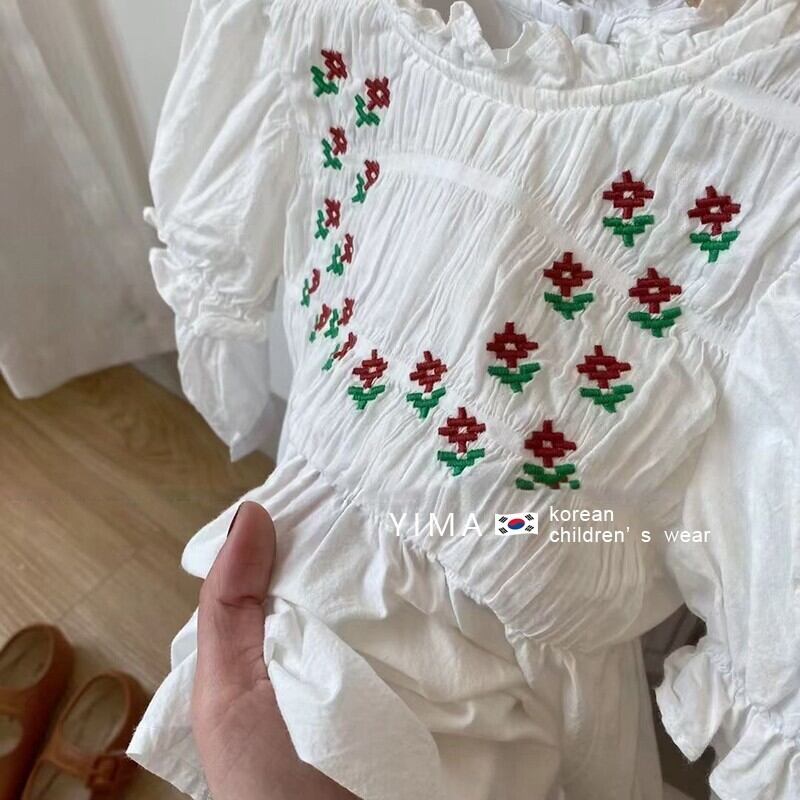 スプリングソリッド カラードレス スタイルプリーツスリーブスカート レッド 刺繍 春物 ソリッドカラー 3/14 春夏 SS mi0953346228756 | Sagittarius By Constellation -KIDS&BABY-