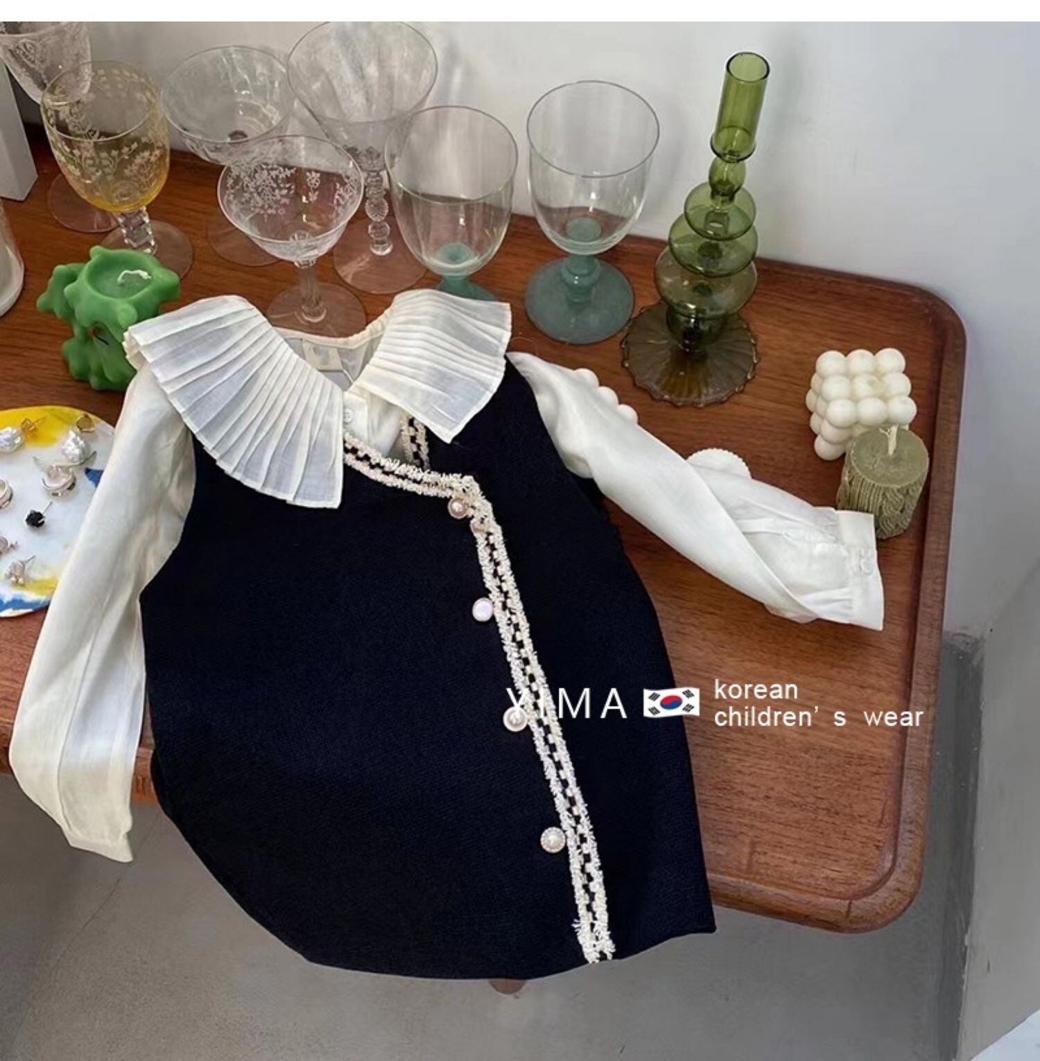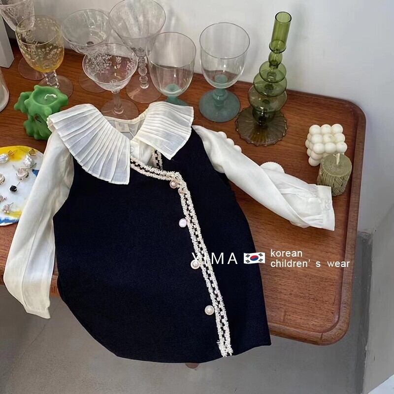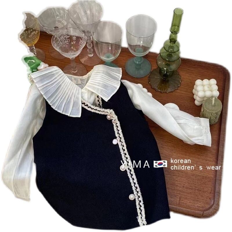色:ホワイトロングスリーブトップ,黒のタンクスカート