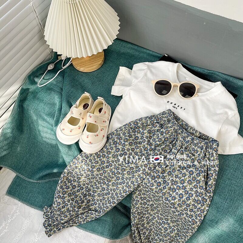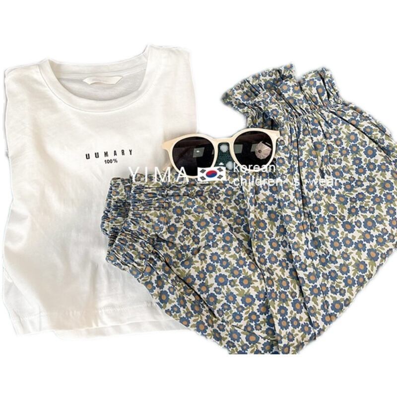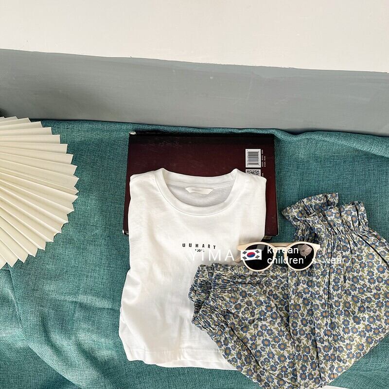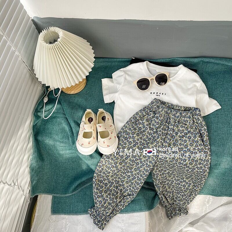 色:白い半袖,フローラルパンツ