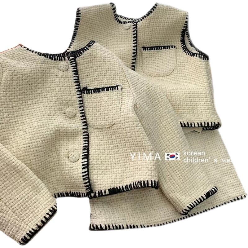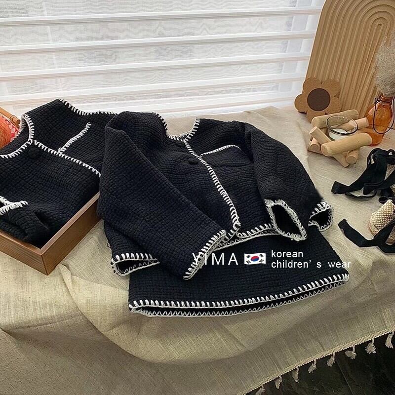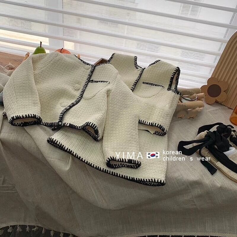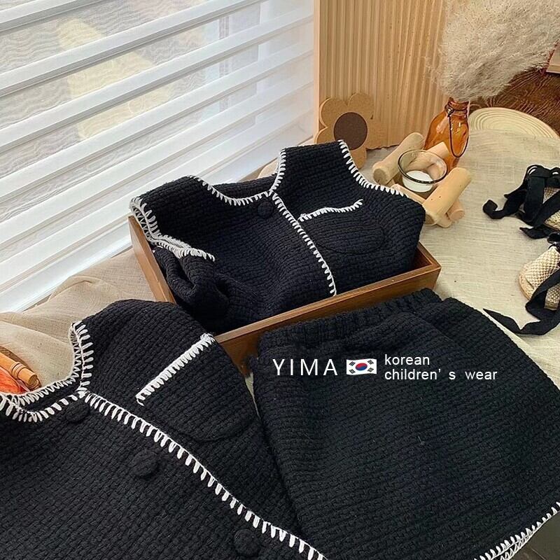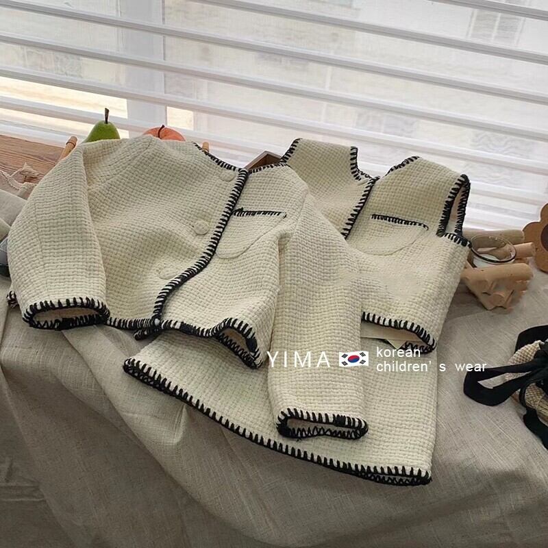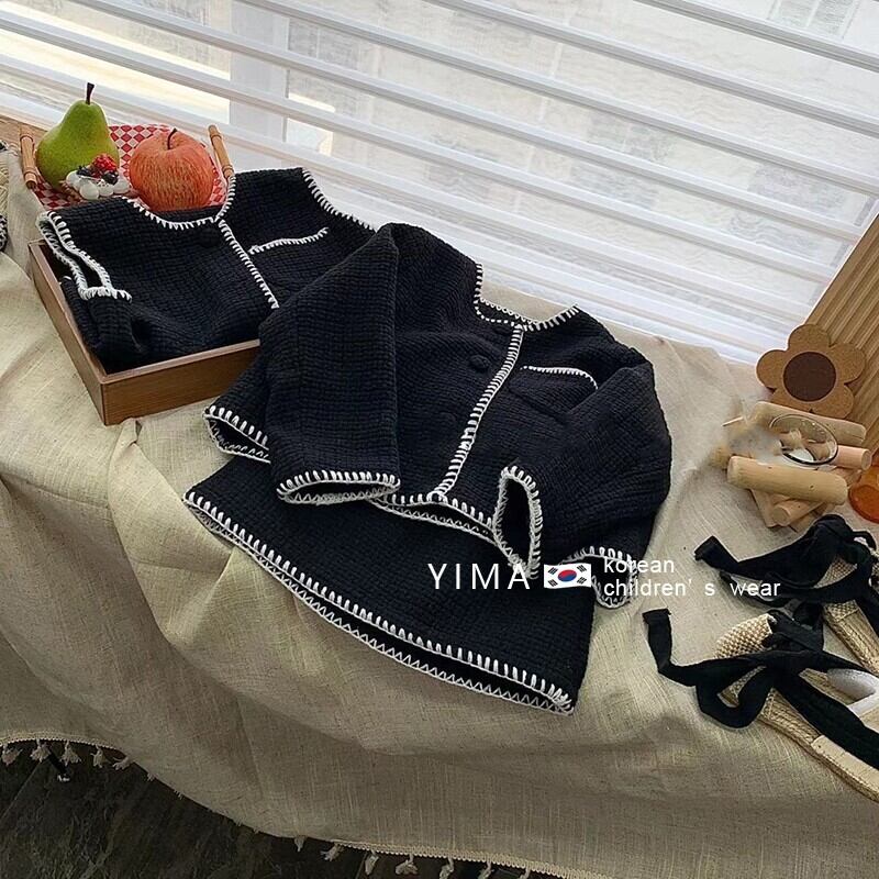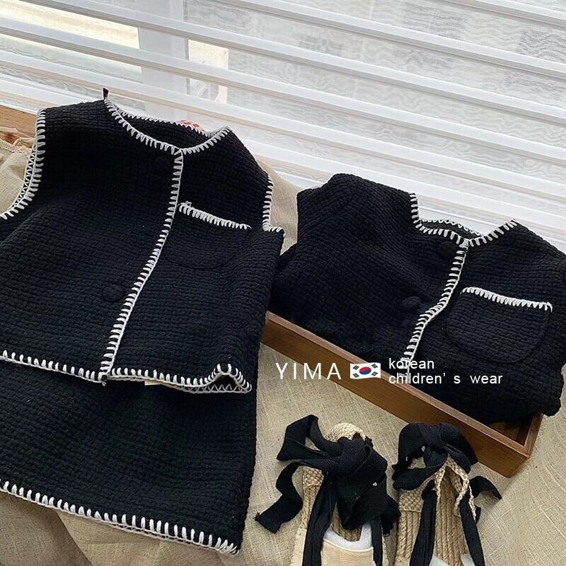 色:アプリコットベスト,アプリコットスカート,アプリコットコート,黒のベスト,黒スカート,黒いジャケット