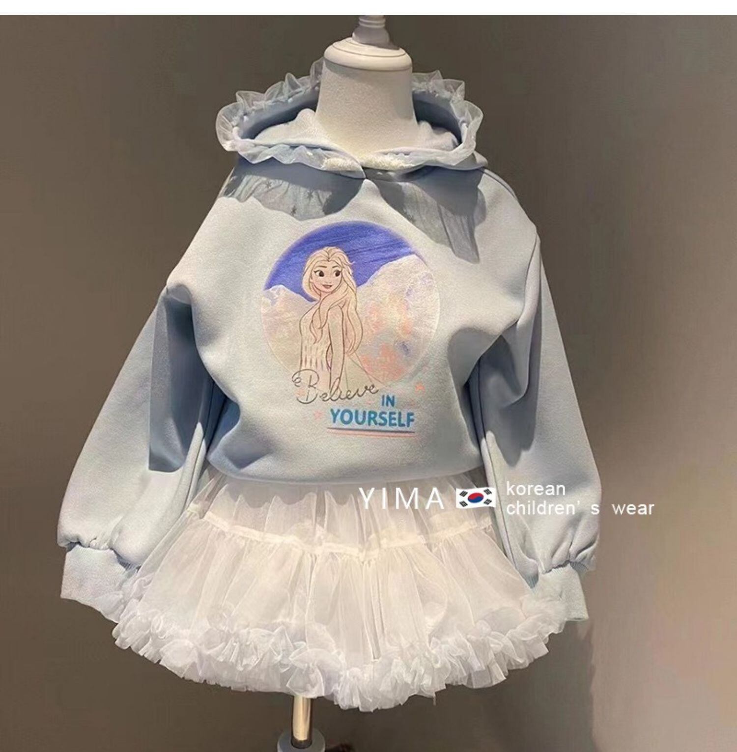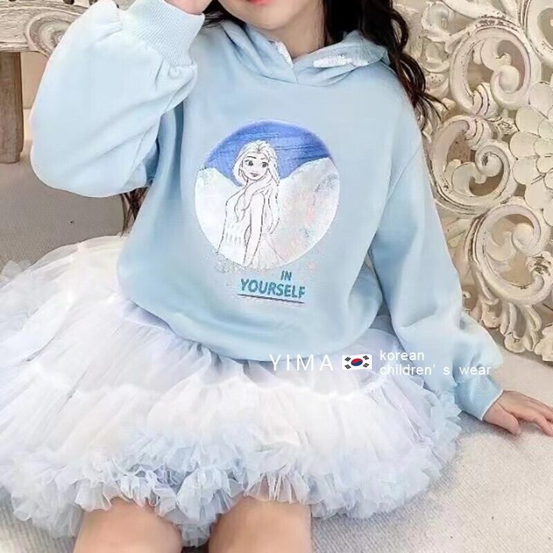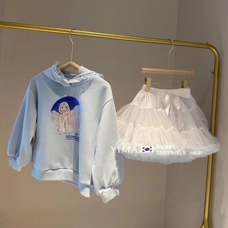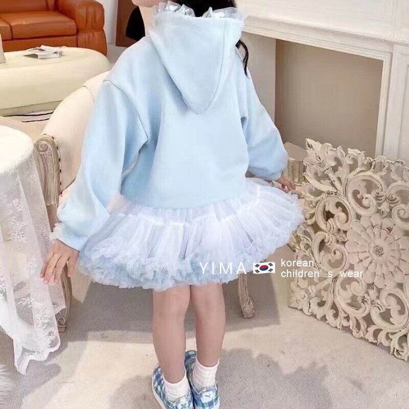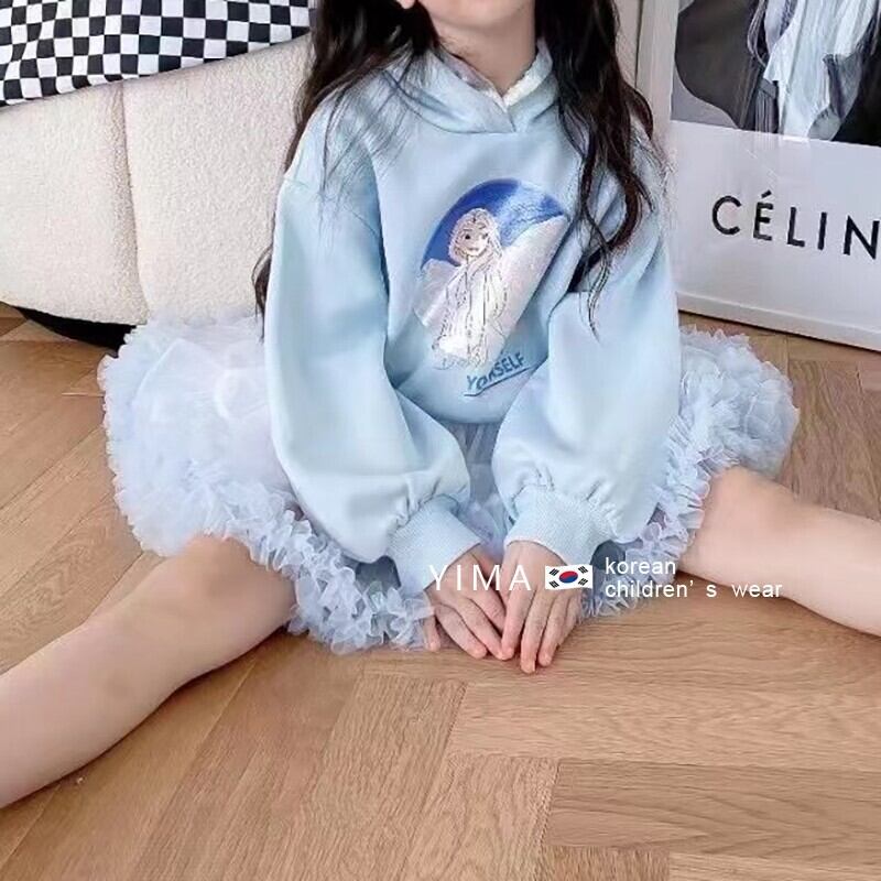 色:青いセーター,白いスカート