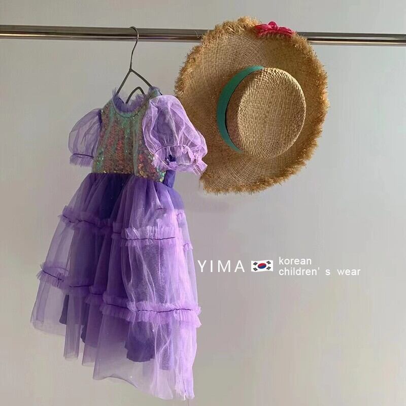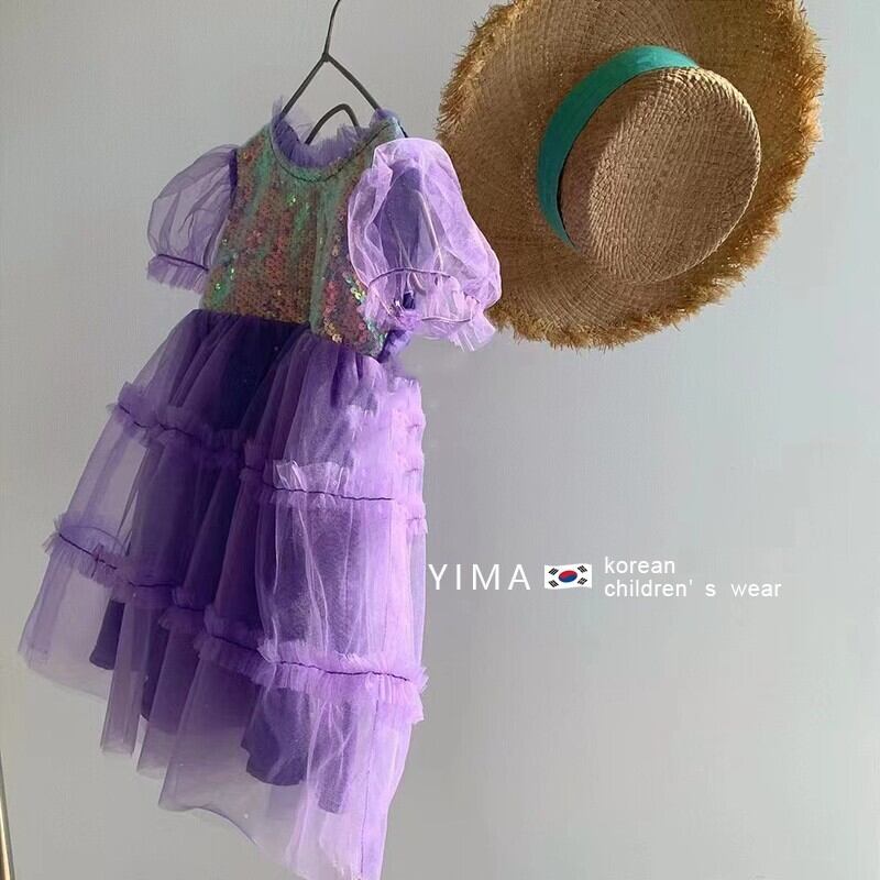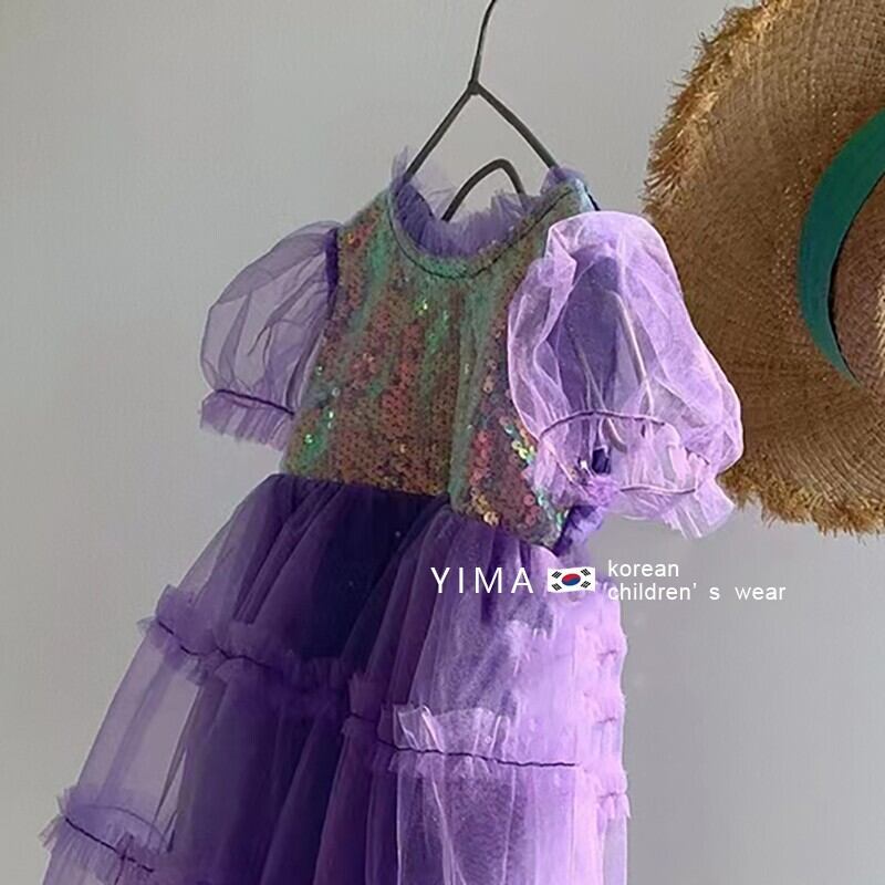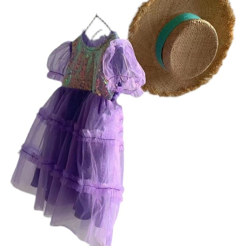 サマースタイルメッシュドレス スパンコールスカート 夏物 パープル 3/14 春夏 SS mi0984253714194 | Sagittarius By Constellation -KIDS&BABY-
