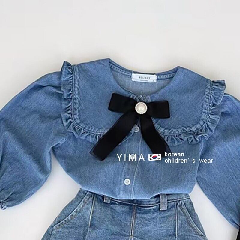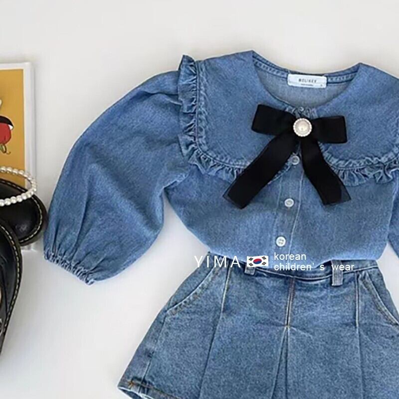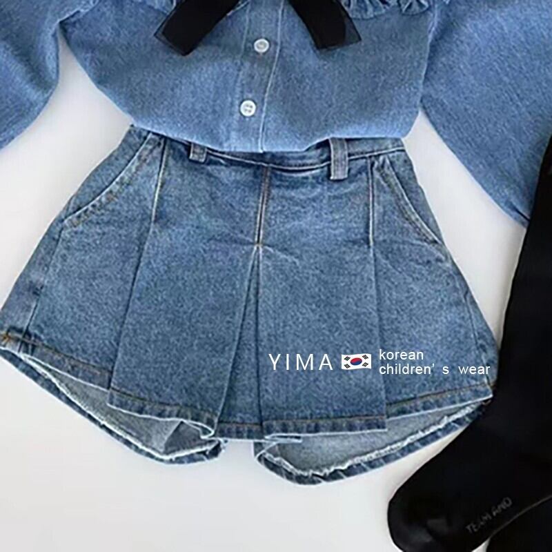 色:ブルーデニムシャツ,ブルーデニムキュロット