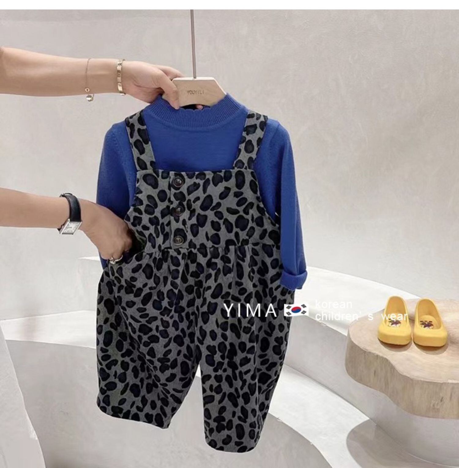色:ヒョウ柄のオーバーオール