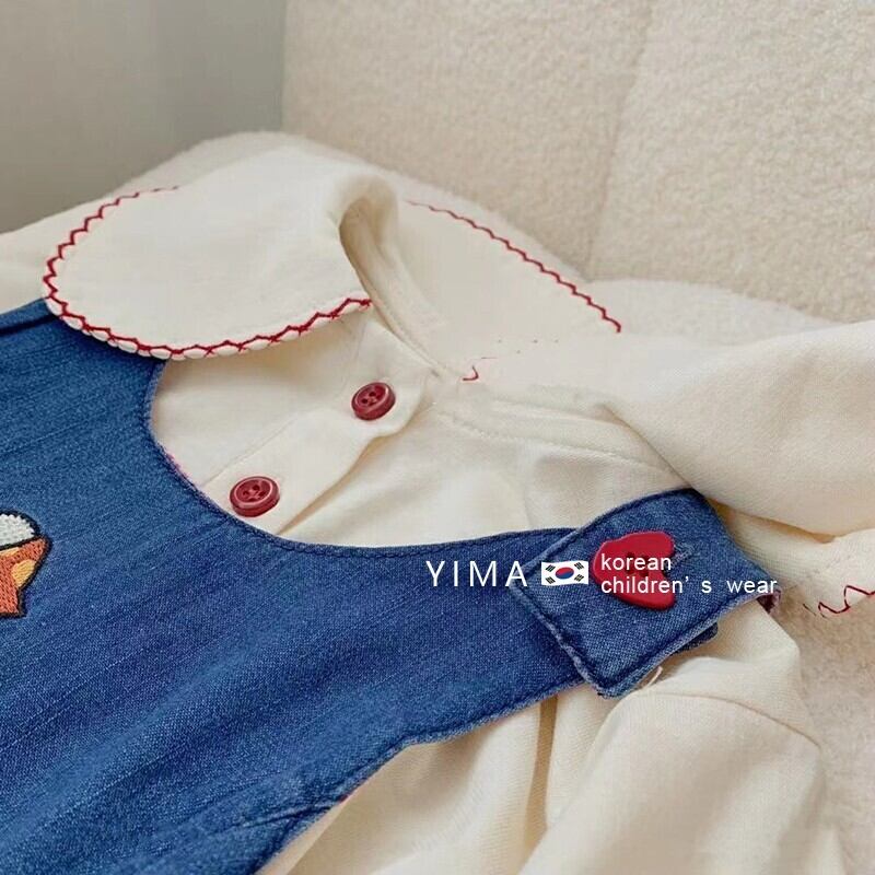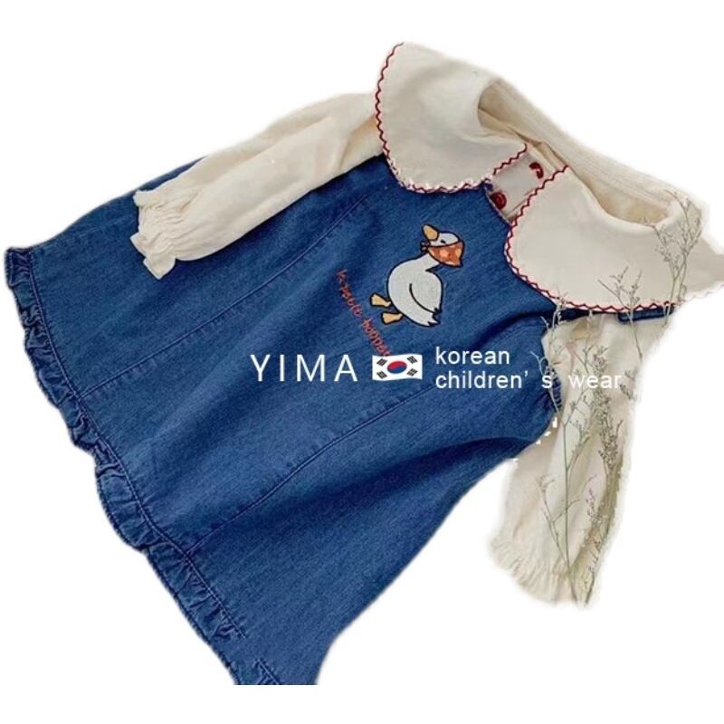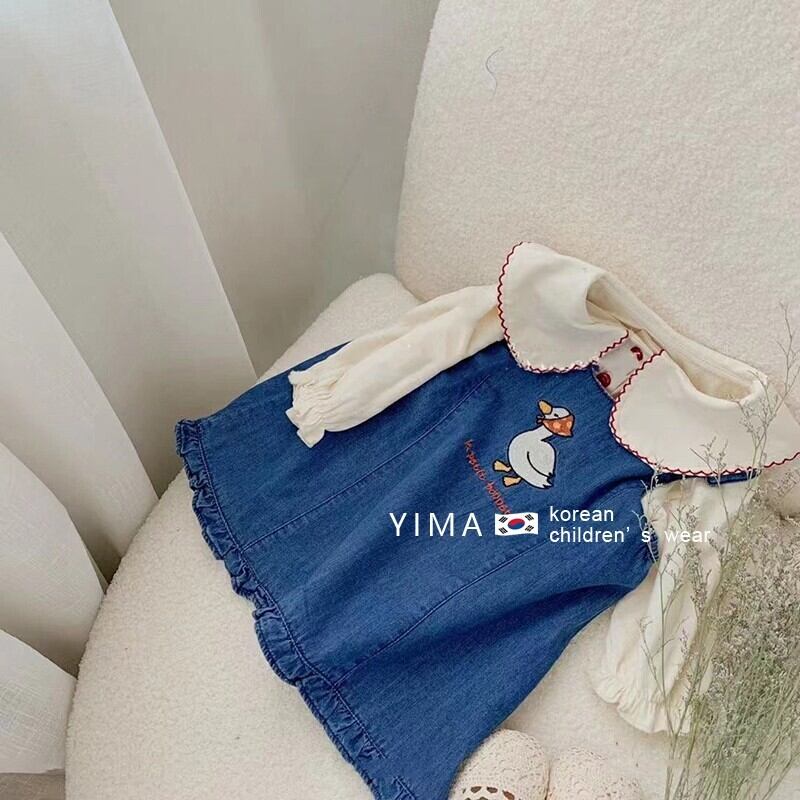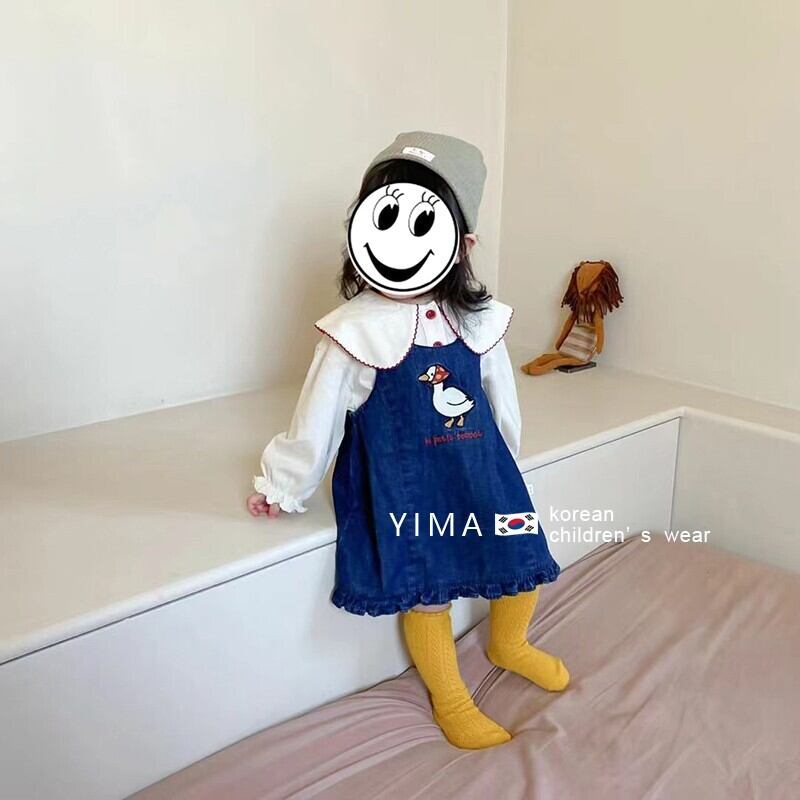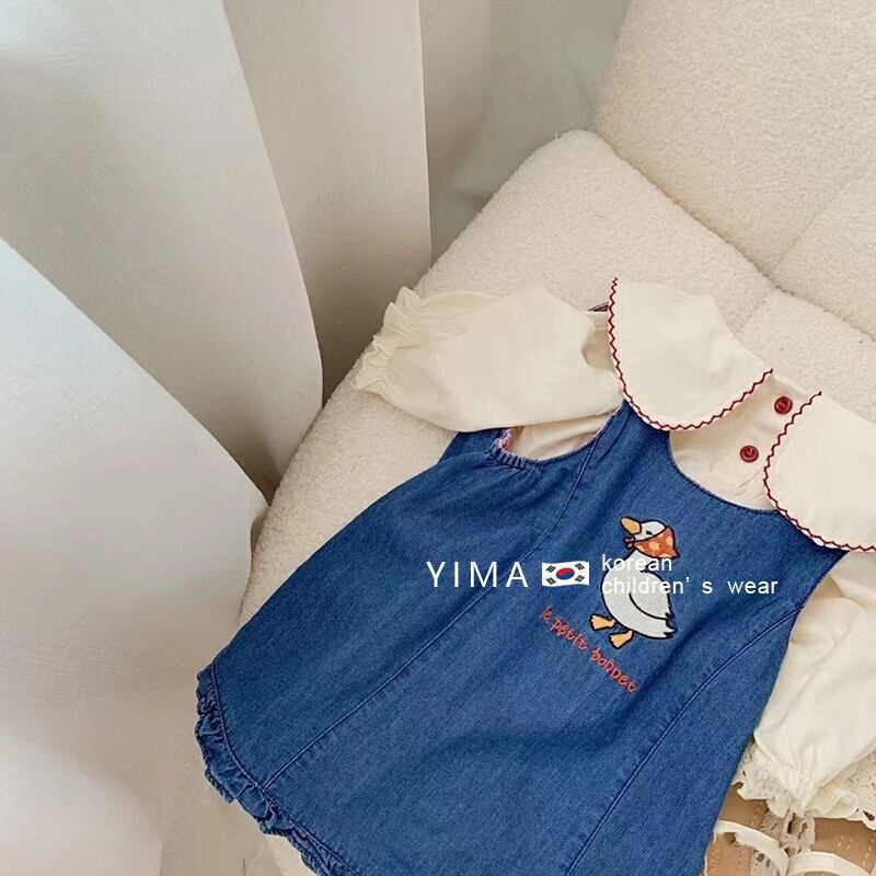 色:ブルーストラップスカート,アプリコットドールカラーシャツ