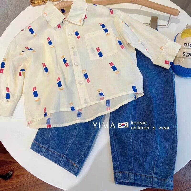 色:スーツシャツ,ブルージーンズ