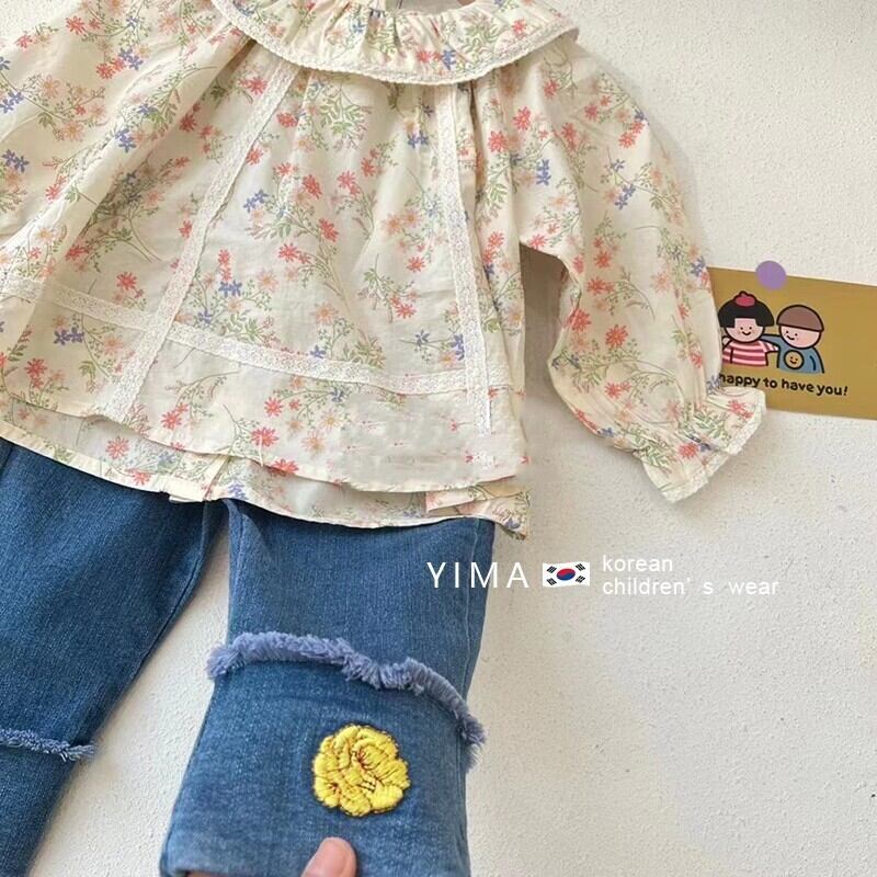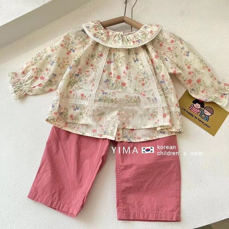 色:ピンクフローラルシャツ,ピンクのパンツ,青パンツ