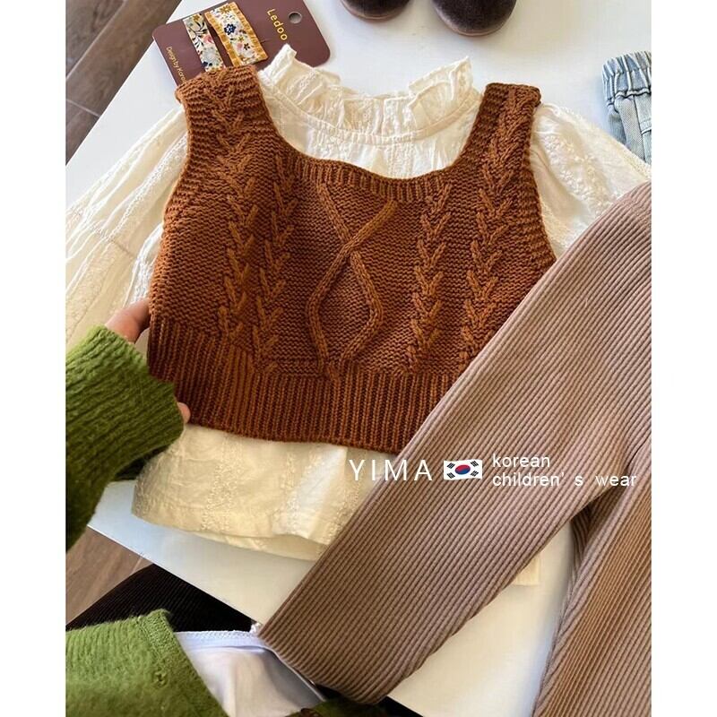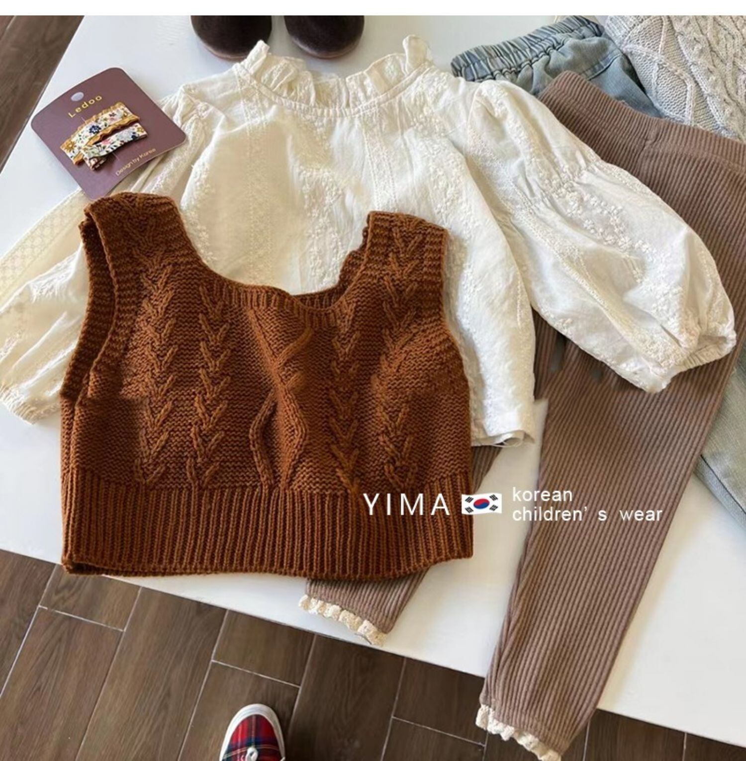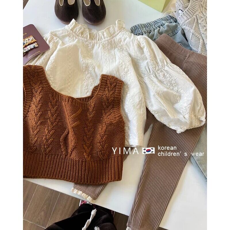 色:オフホワイトのシャツ,ブラウンベスト,グレーのレギンス