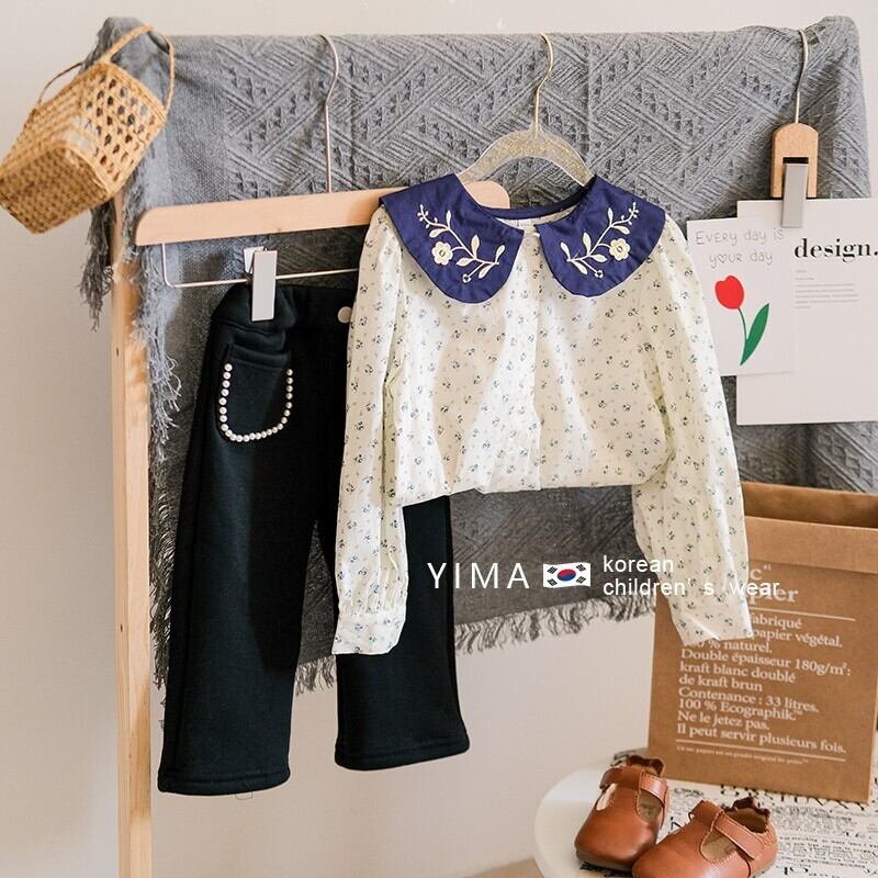色:花柄シャツ,黒いズボン