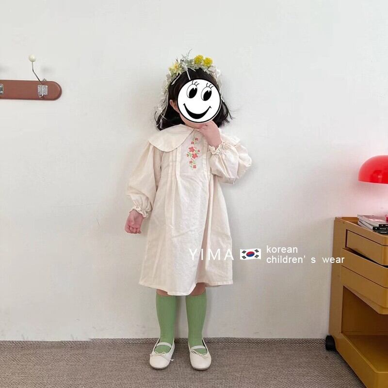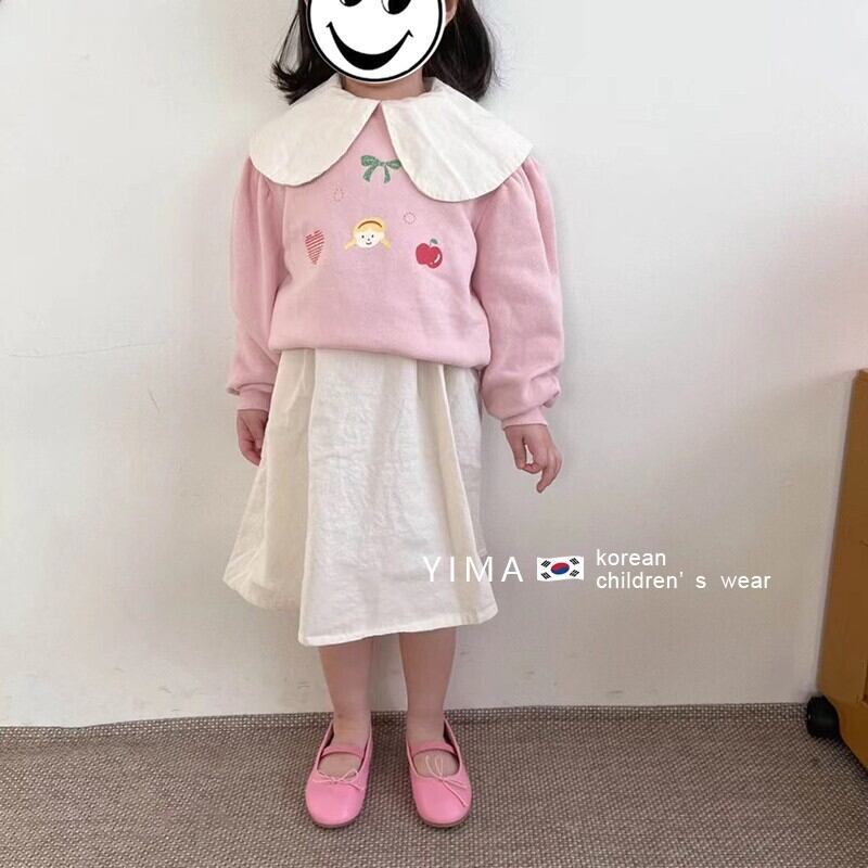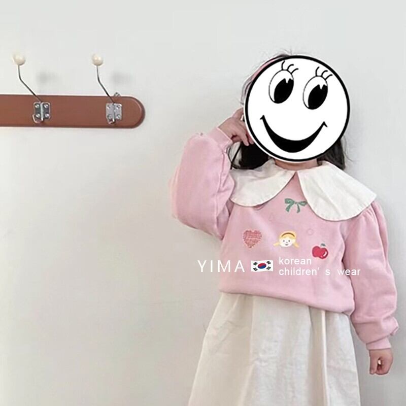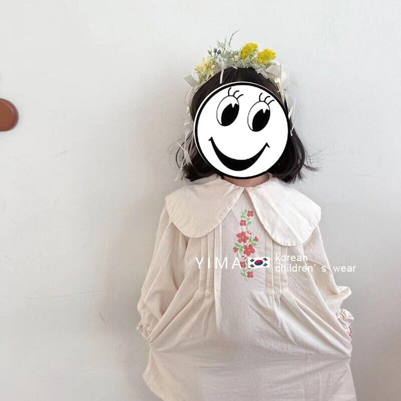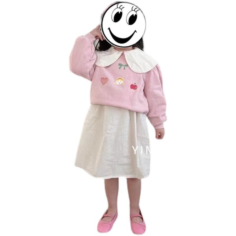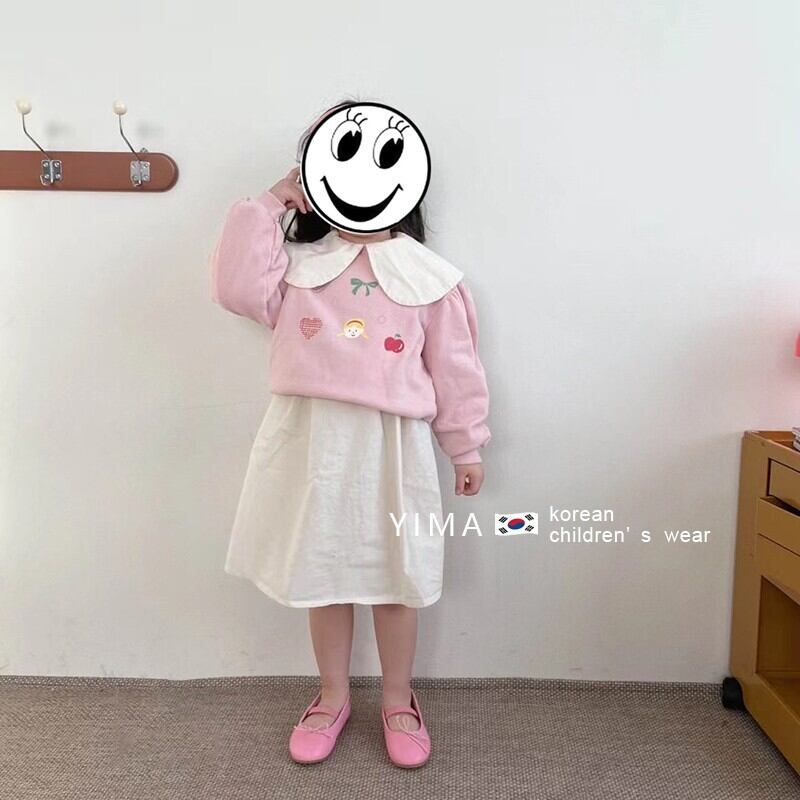 色:ピンクのクルーネックトップ,ベージュの人形の襟のドレス