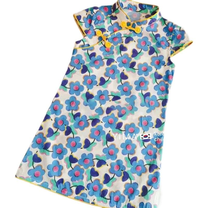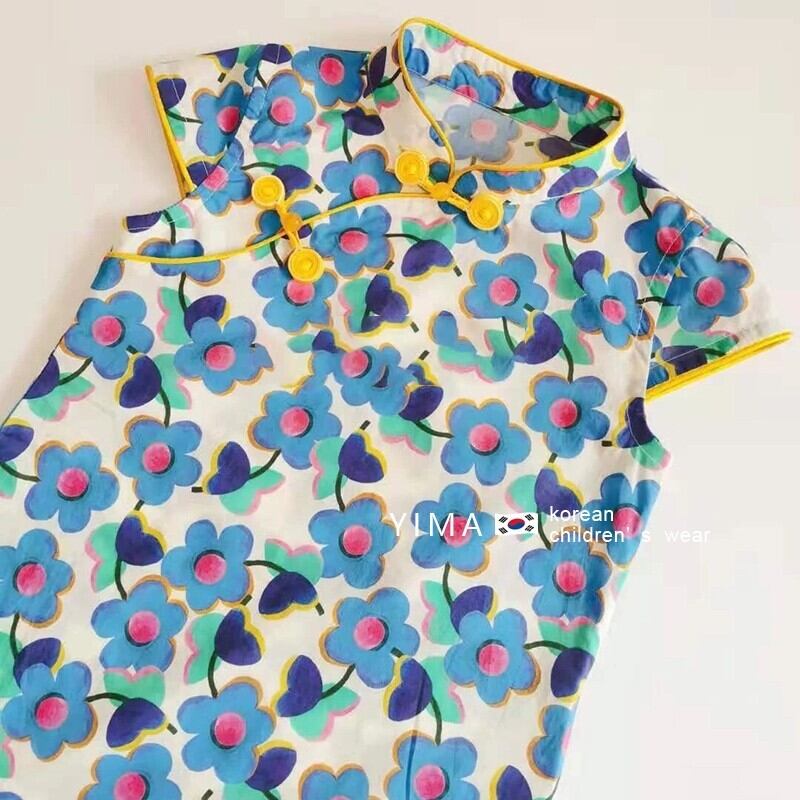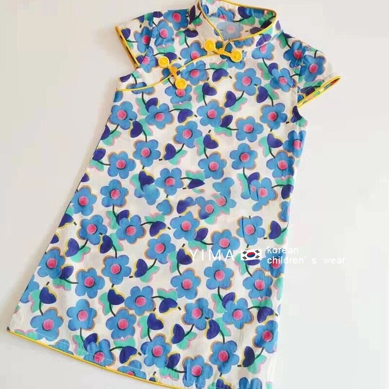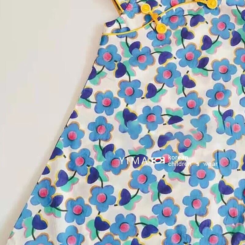 色:青い花のチャイナドレス
