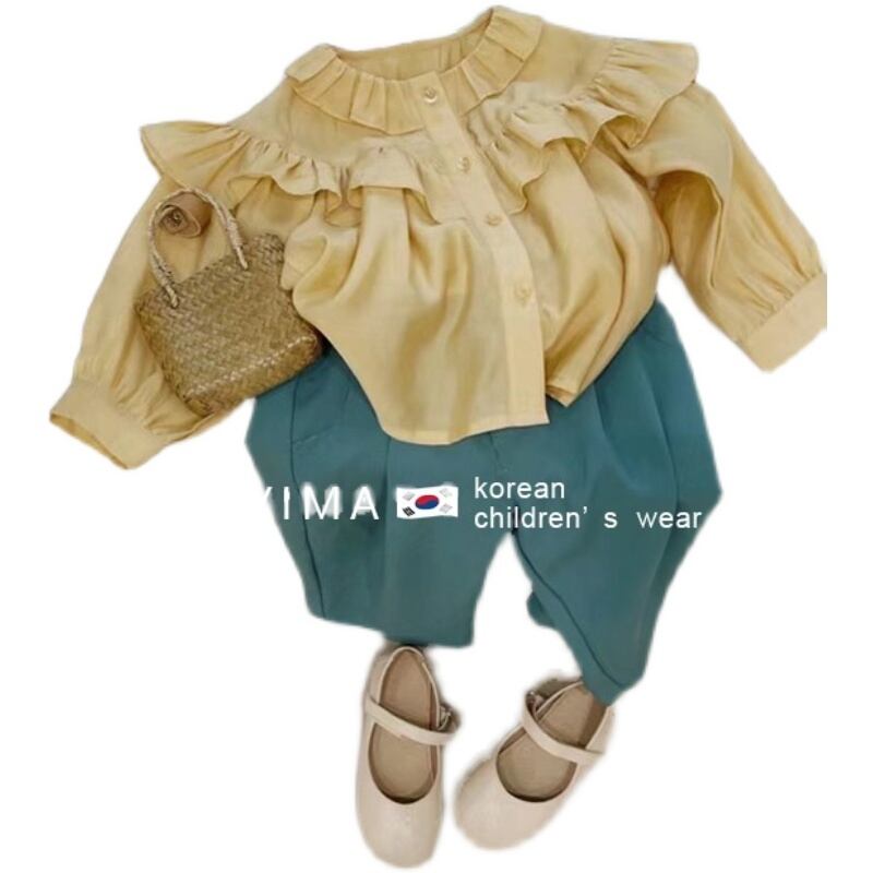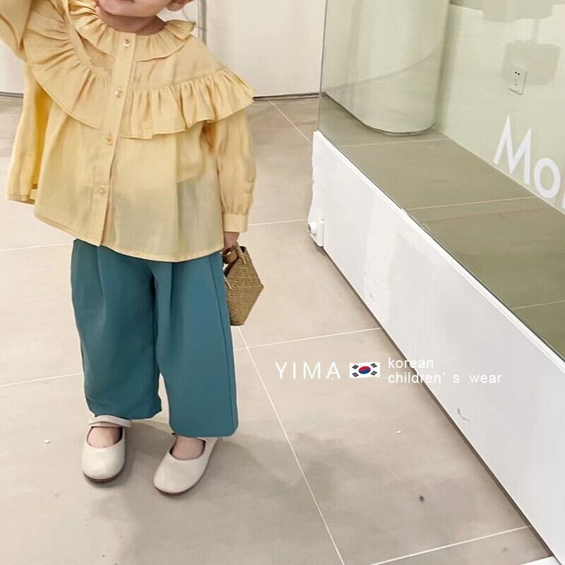 色:黄色のシャツ,ティールパンツ
