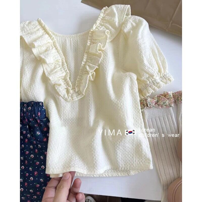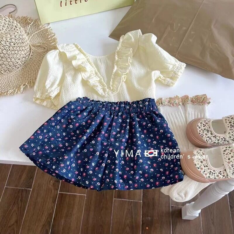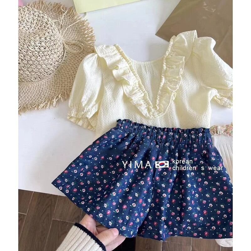 色:クリームホワイトトップ,ブルーフローラルショーツ