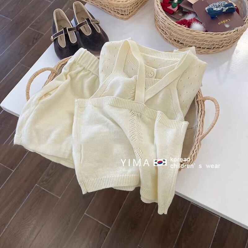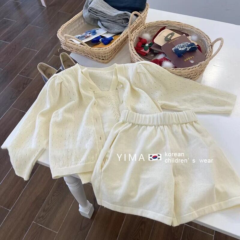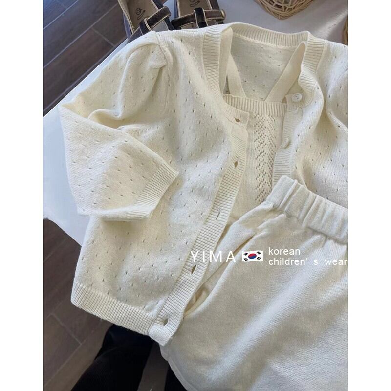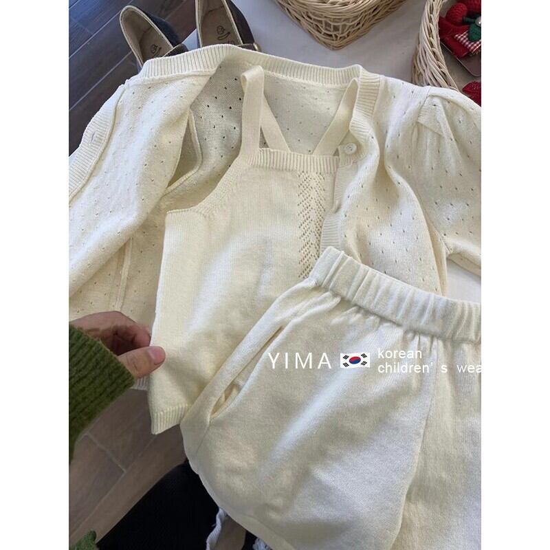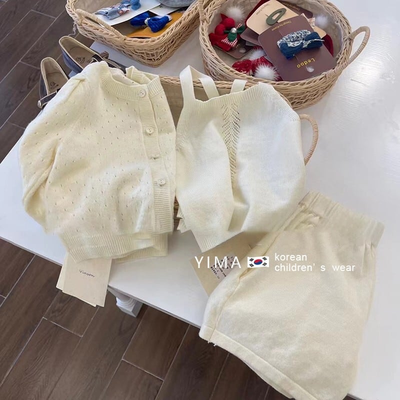 色:ベージュカーディガン+ベージュスリング,ベージュのショートパンツ