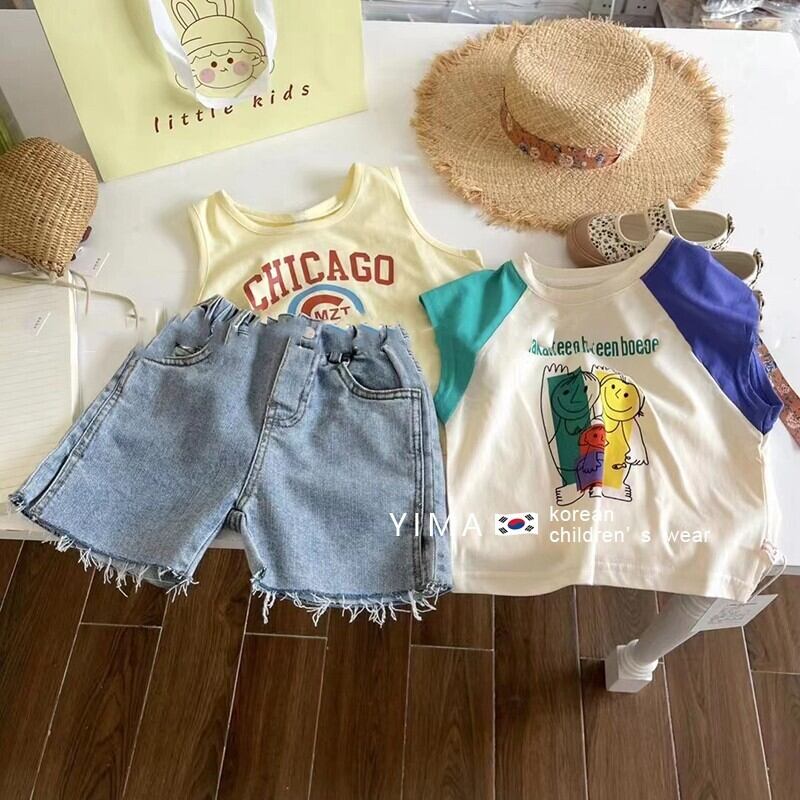 色:白いTシャツ,黄色のベスト,ブルージーンズ