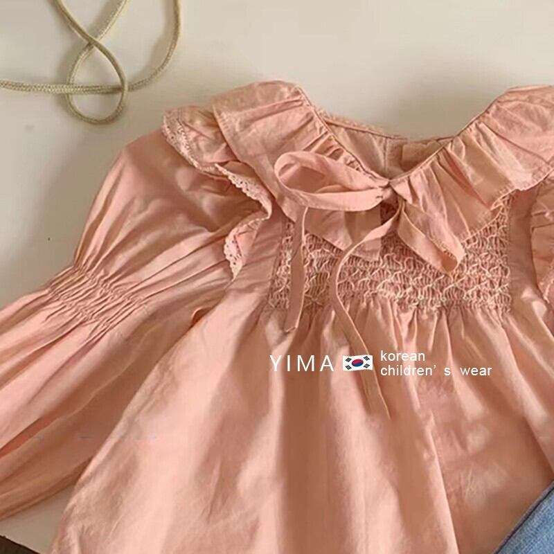 色:ピンクのシャツ,ブルージーンズ