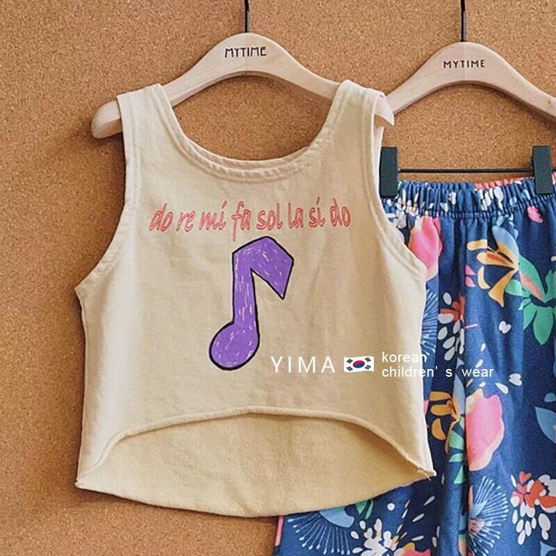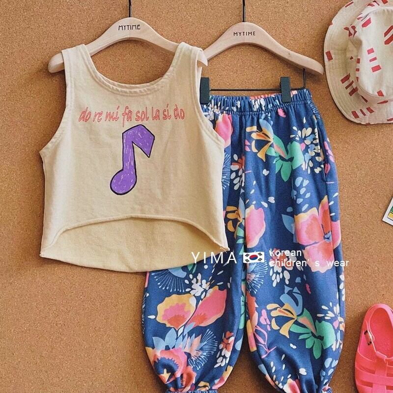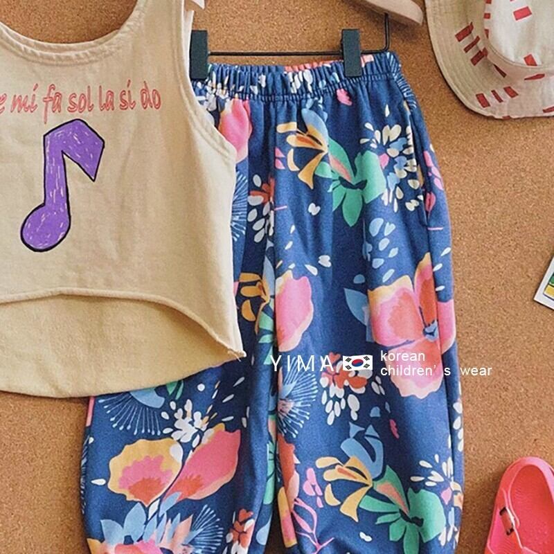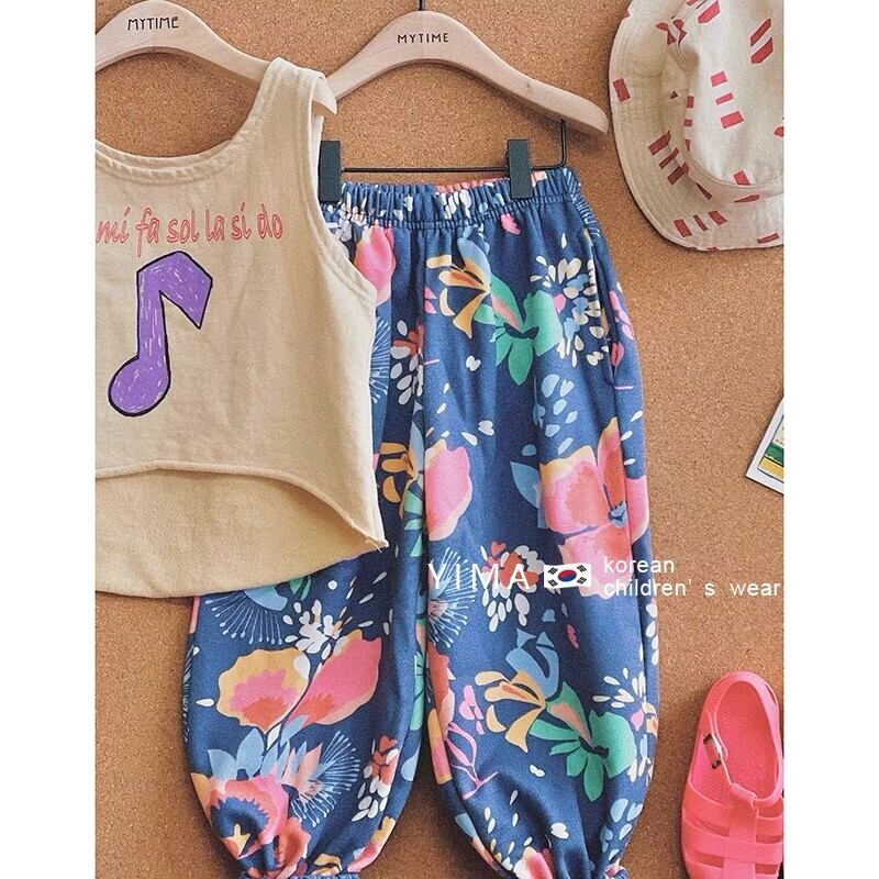 色:ベージュのベスト,ブルーフローラルパンツ