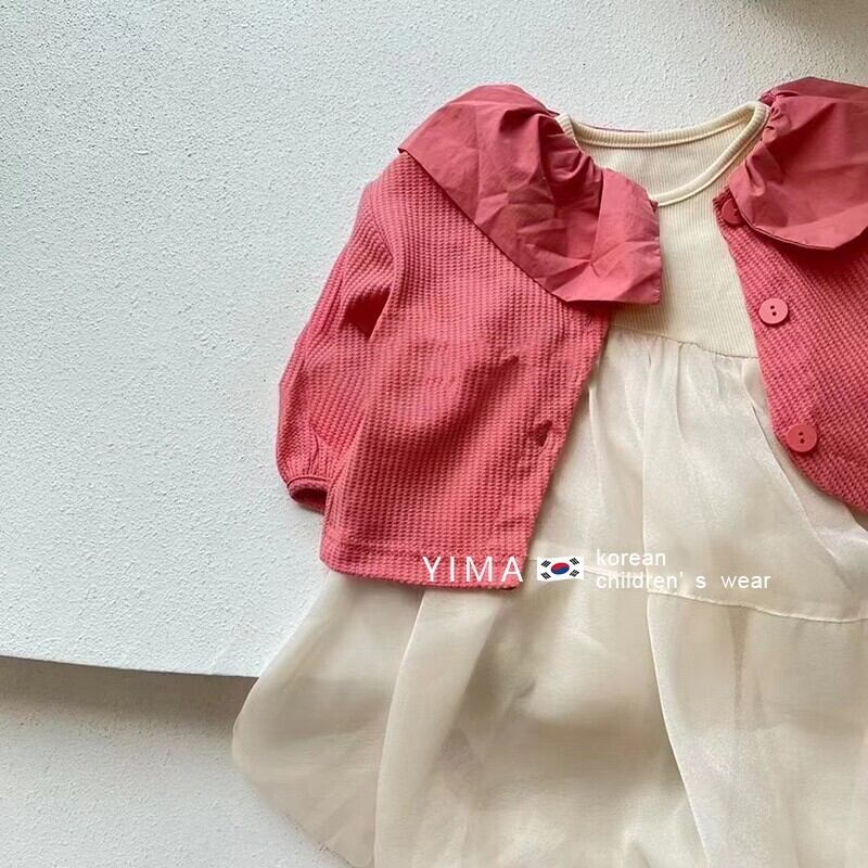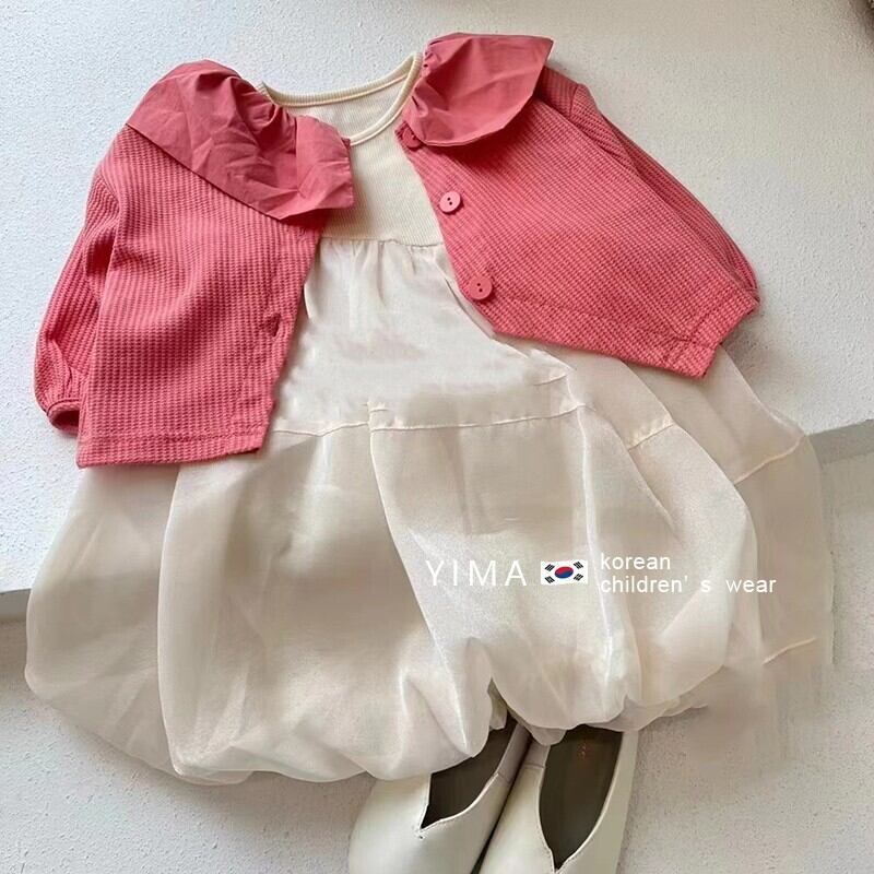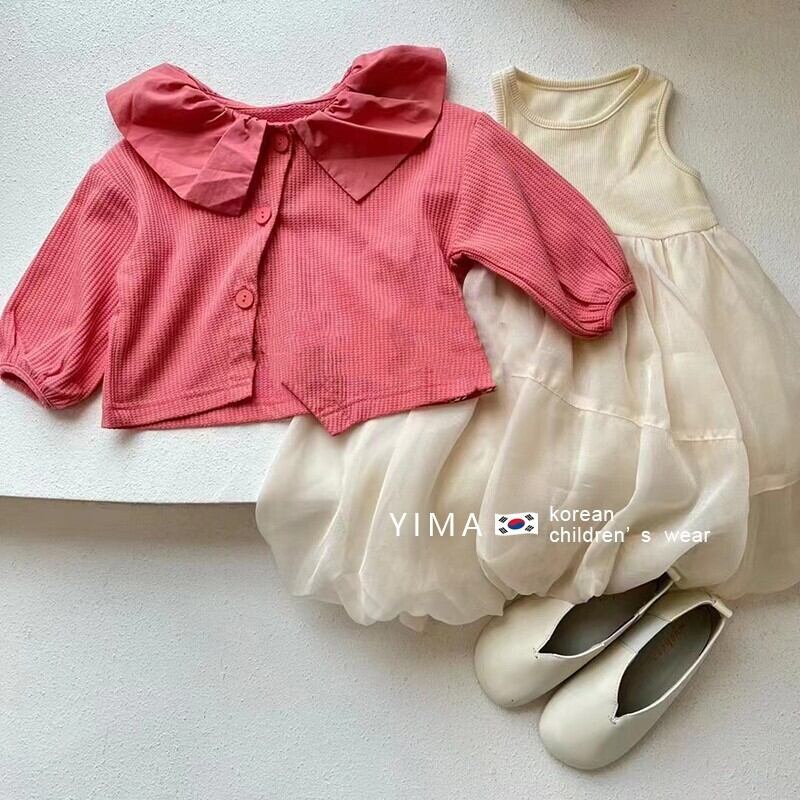 色:白いベストスカート,赤いカーディガン