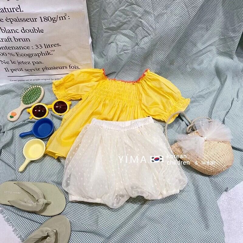 色:黄色のシャツ,ホワイトショーツ