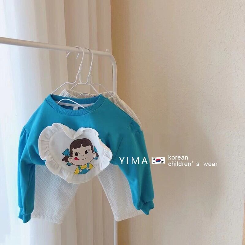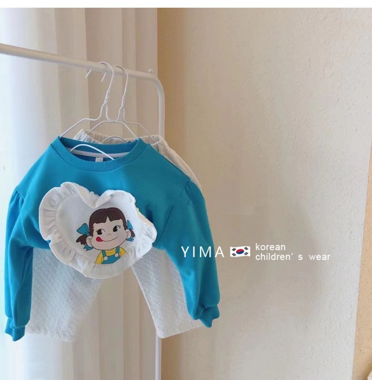 色:青いセーター,白いズボン,赤いセーター