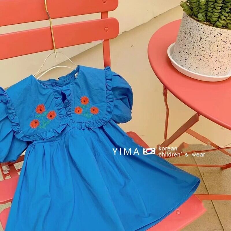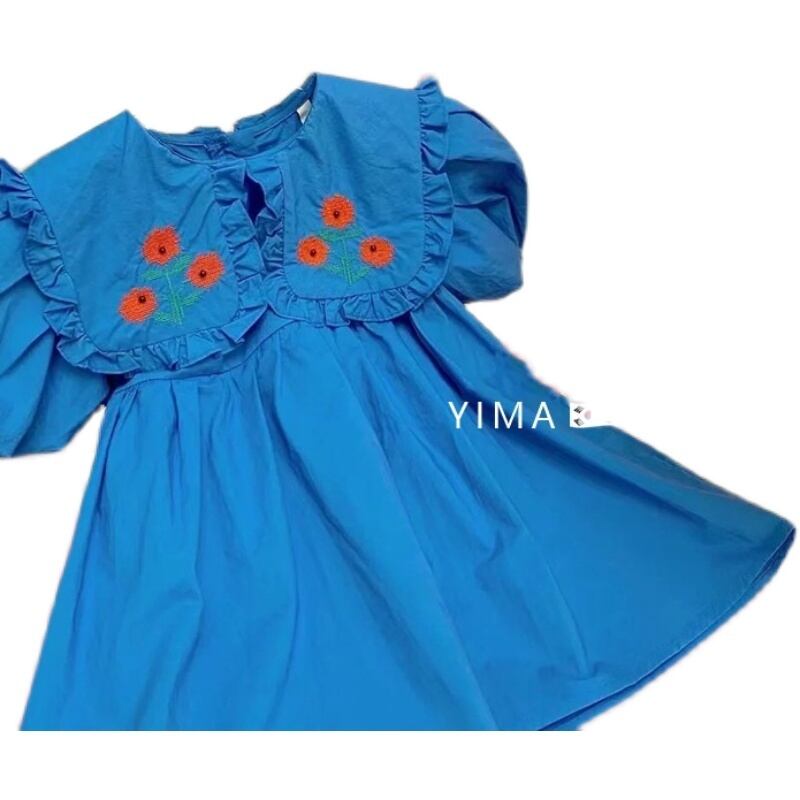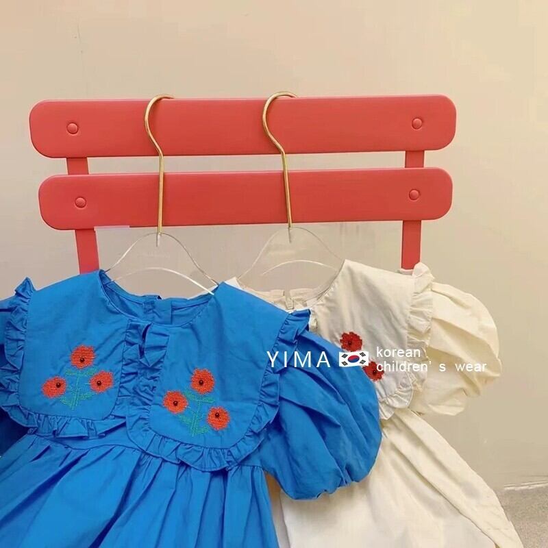 サマードレス カラーFlowerデザイン Aラインスカート レッド コットン 刺繍 夏物 フラワーデザイン 3/14 春夏 SS mi0988460962291 | Sagittarius By Constellation -KIDS&BABY-