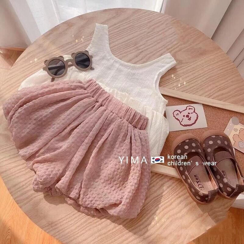 色:白いベスト,ピンクのショートパンツ