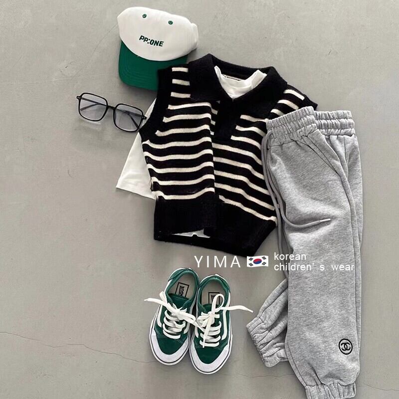 色:グレーガードパンツ,ブラックストライプベスト,ホワイトベーストップ