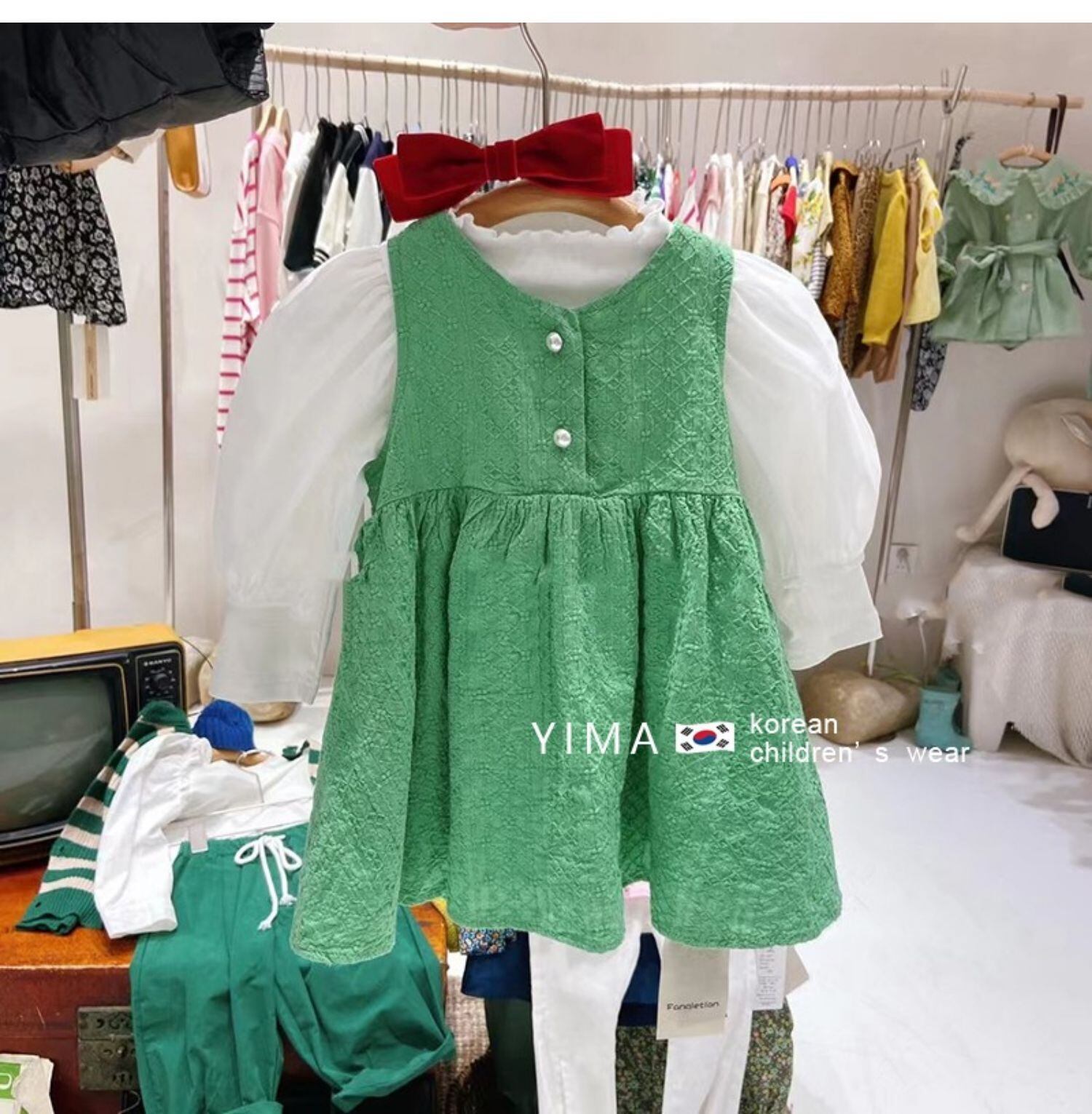色:グリーンタンクスカート,ホワイトボトミングシャツ