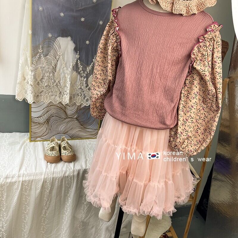 色:パープルトップ,ピンクのスカート