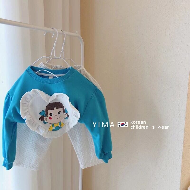 色:青いセーター,白いズボン