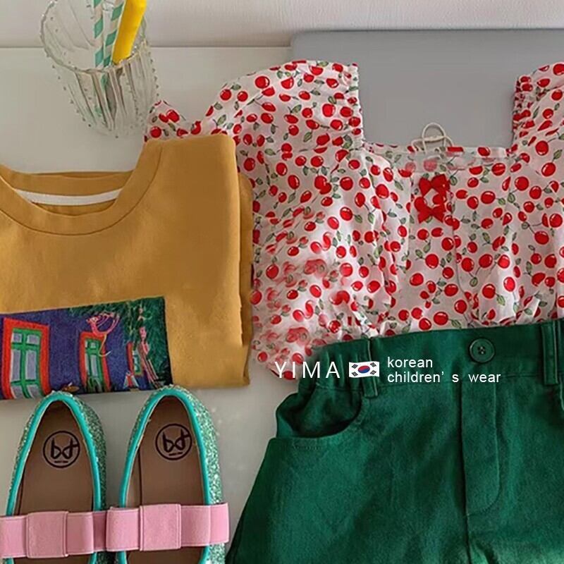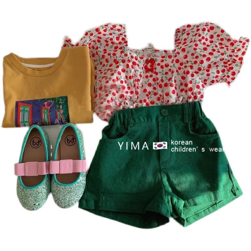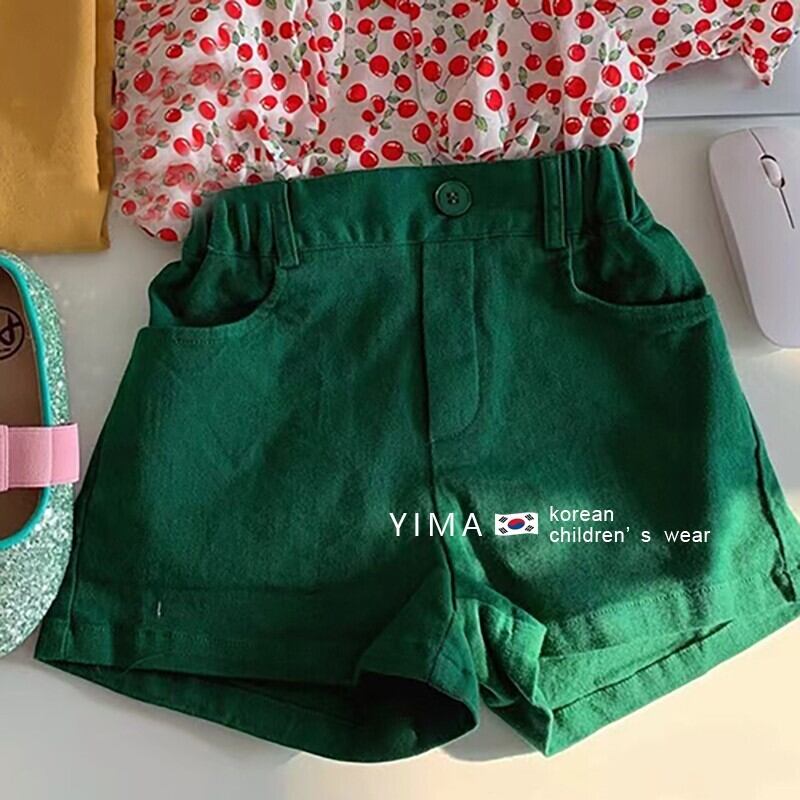色:ピンクのシャツ,グリーンショートパンツ