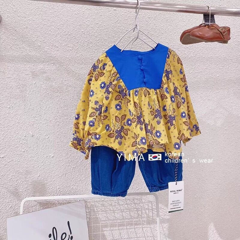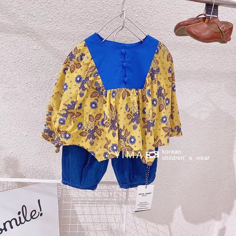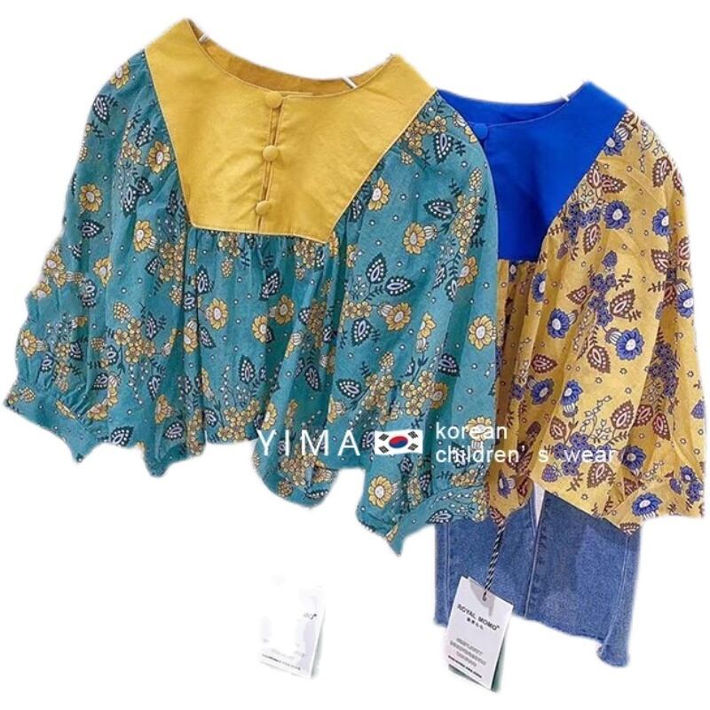 スプリングフローラルシャツ ラウンドネックトップス ロング 春物 花柄 Oネック 3/14 春夏 SS mi0920715352396 | Sagittarius By Constellation -KIDS&BABY-