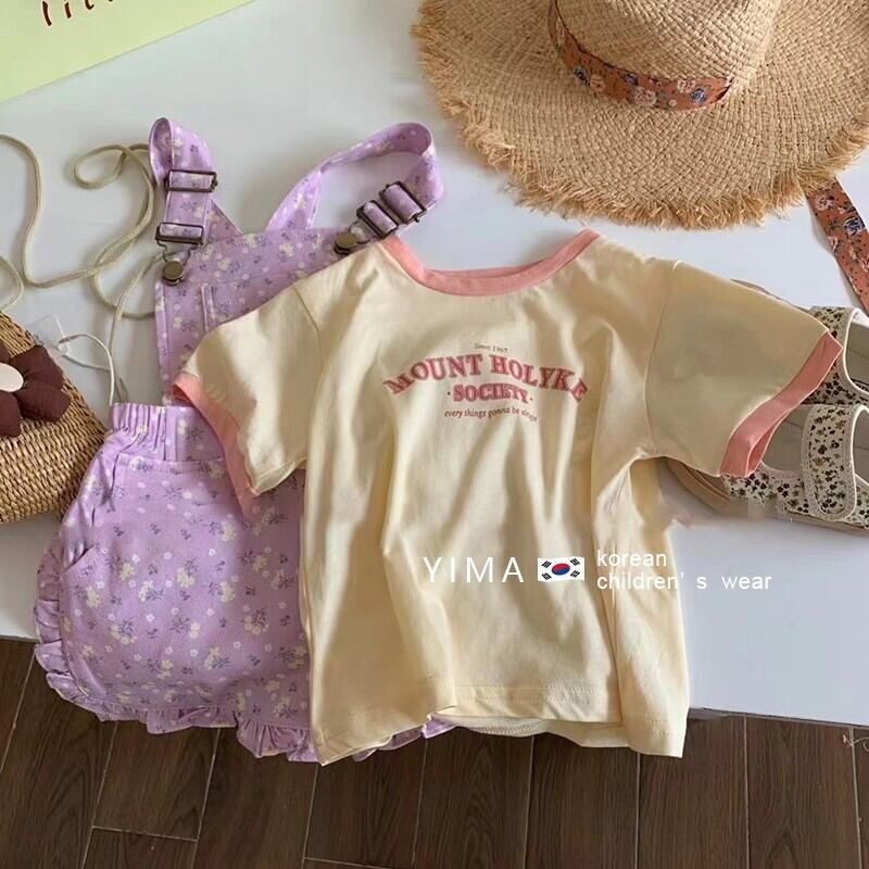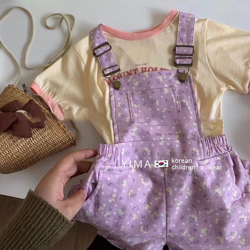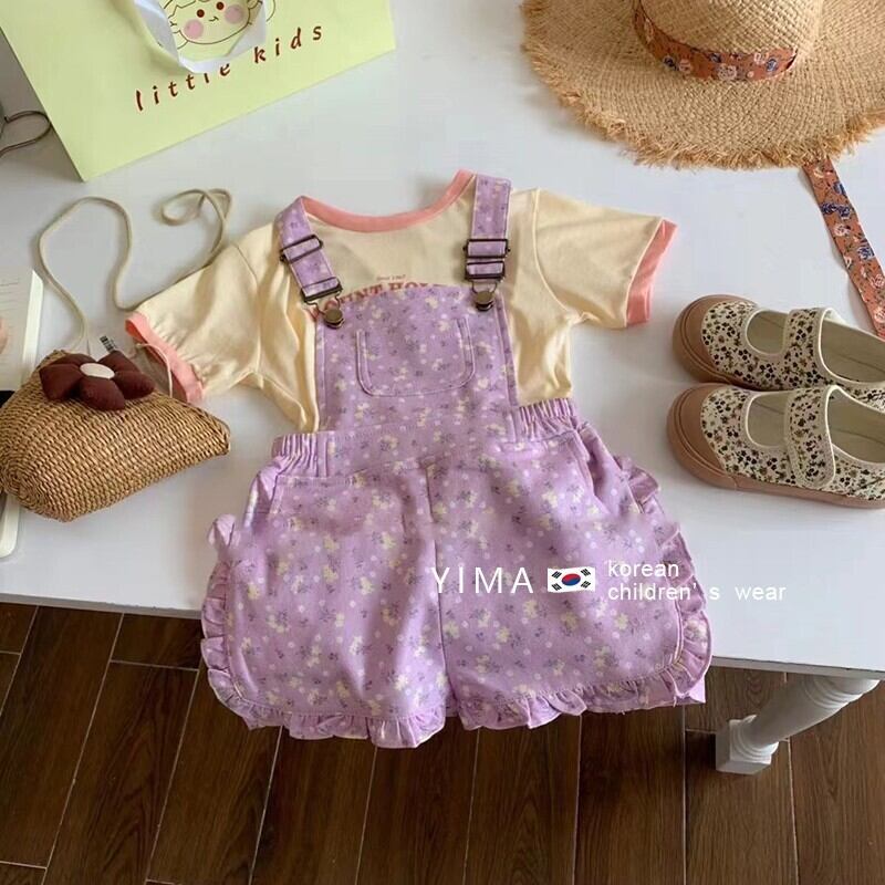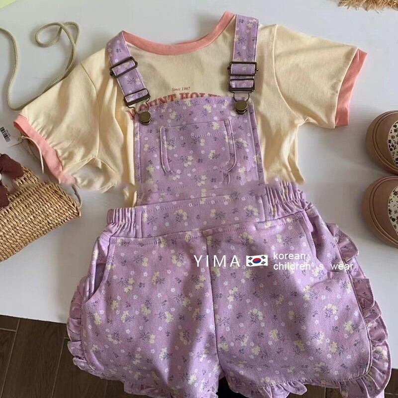 色:黄色の半袖,紫のオーバーオール