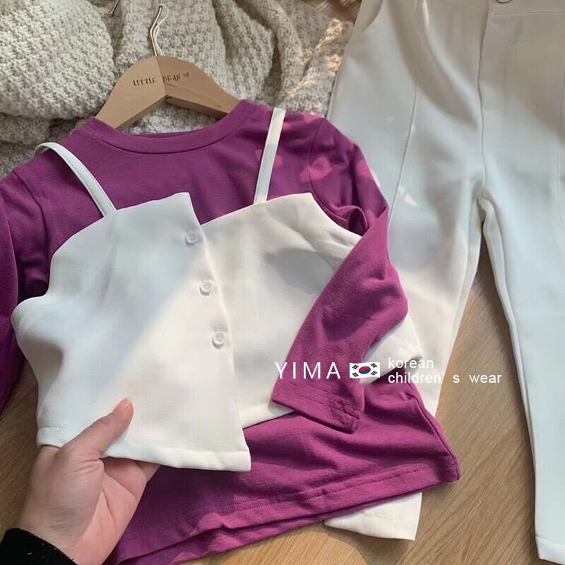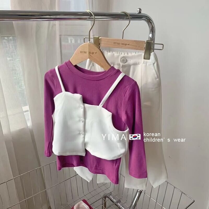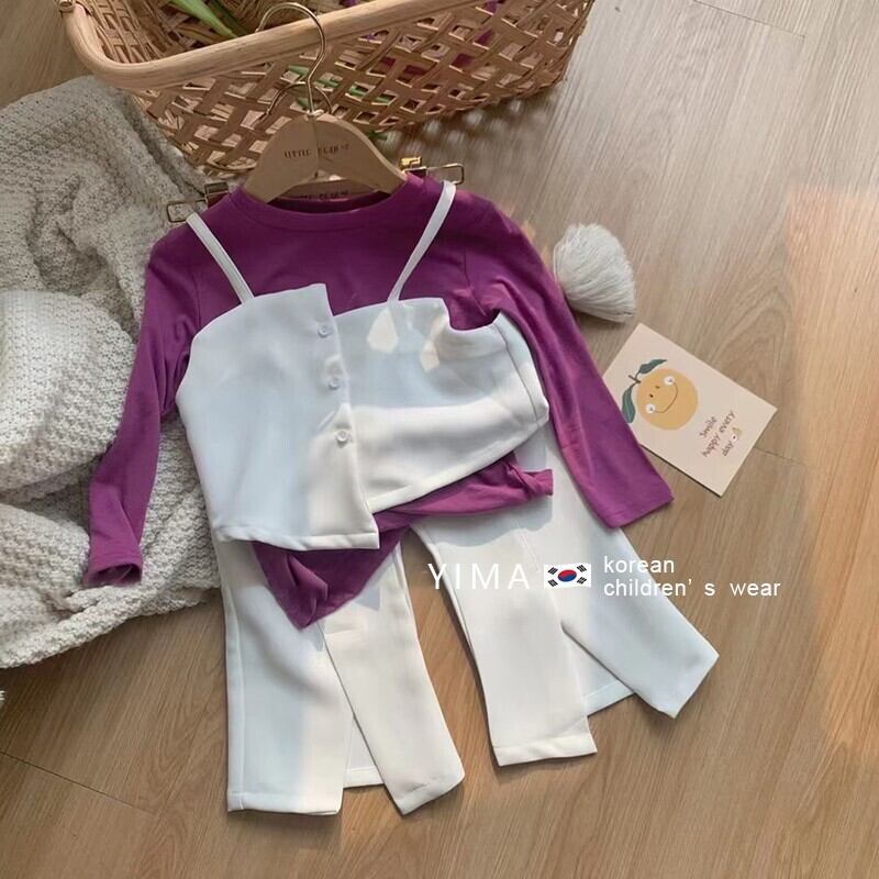 色:白いベスト,白いズボン,パープルボトミングシャツ