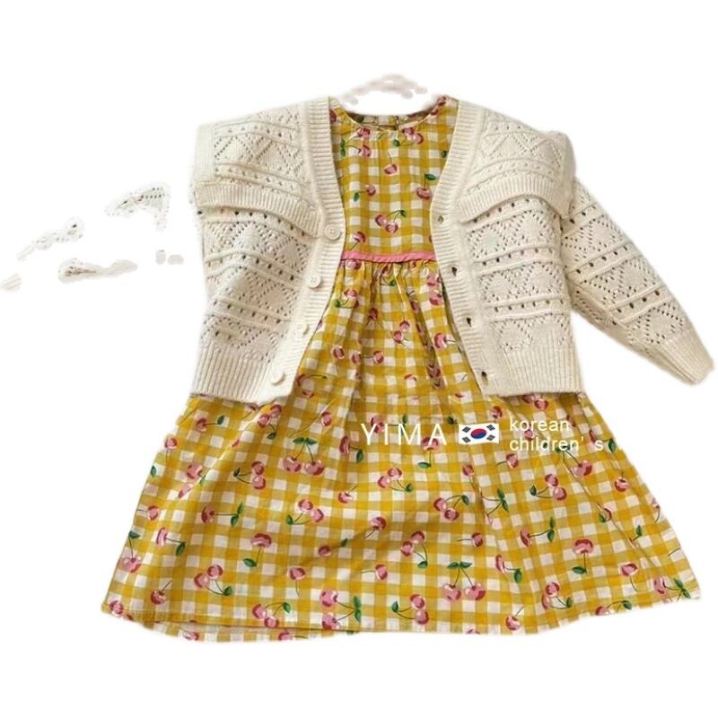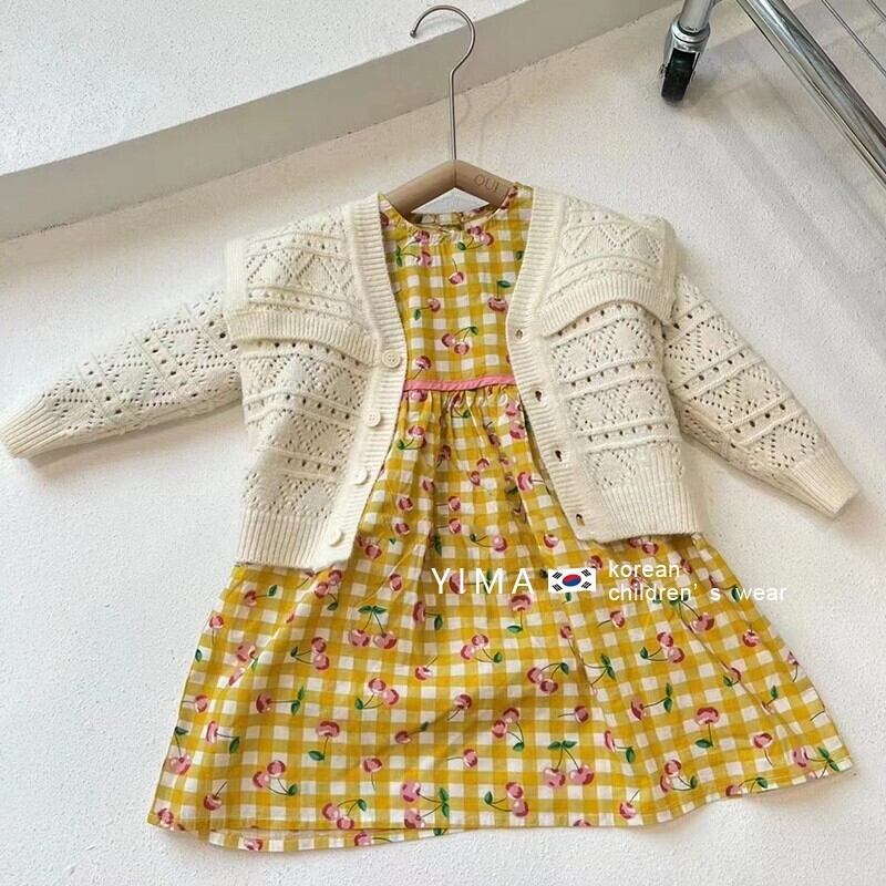 色:白いセーター,黄色のドレス