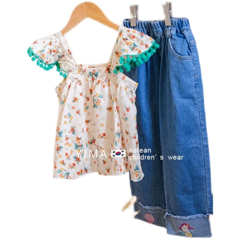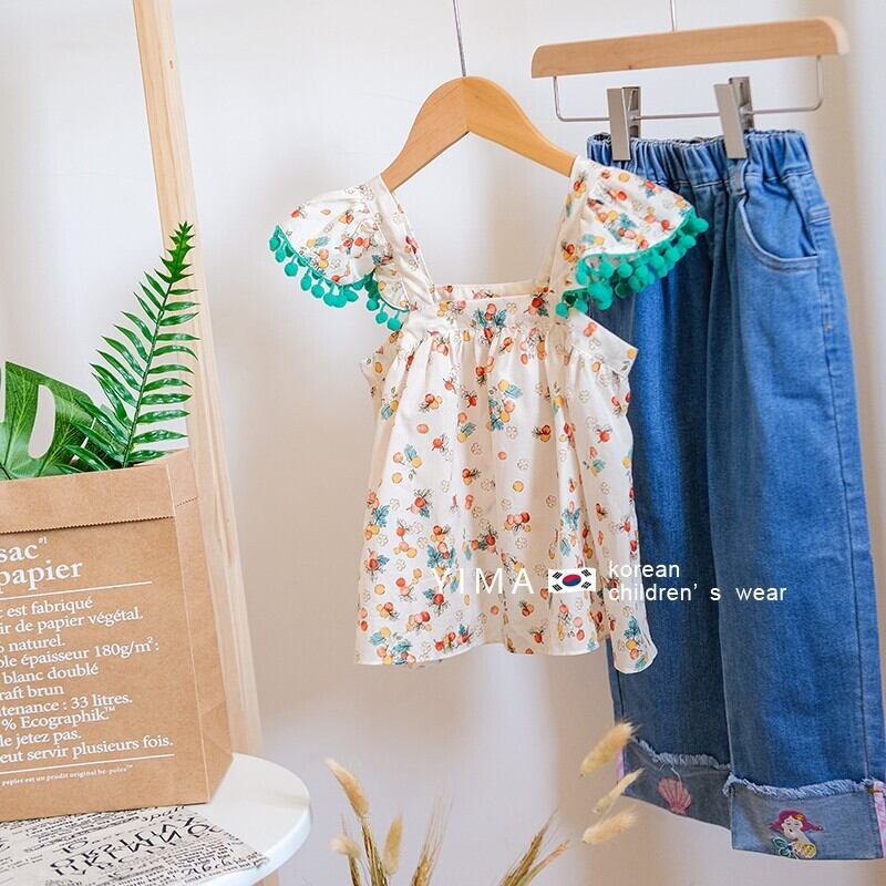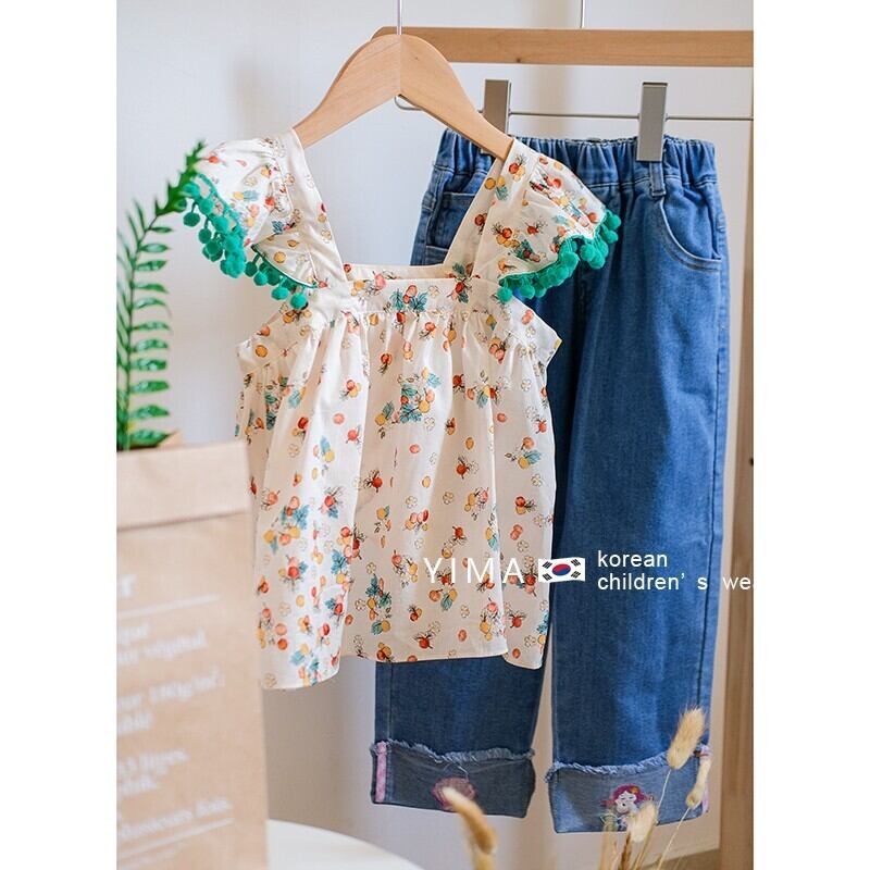 色:フローラルキャミソール,青パンツ
