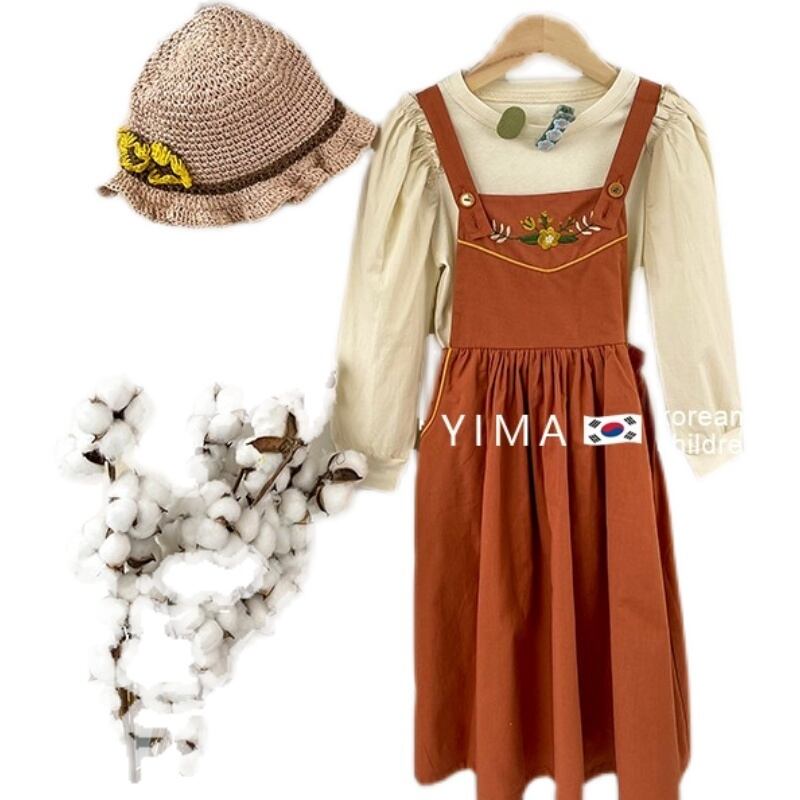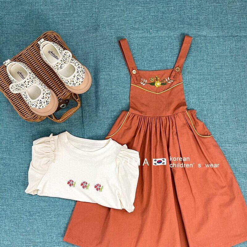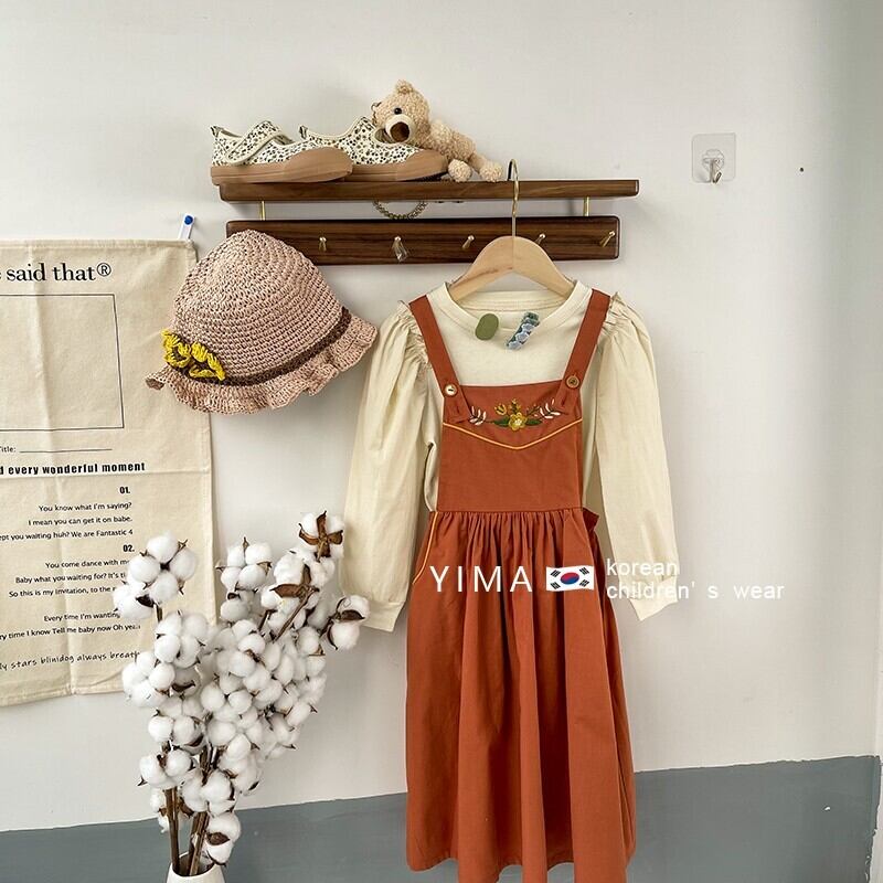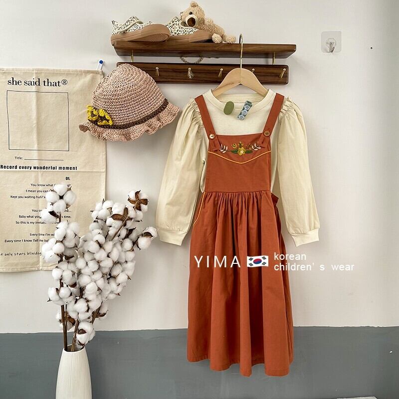 色:ベージュトップ,オレンジサスペンダースカート